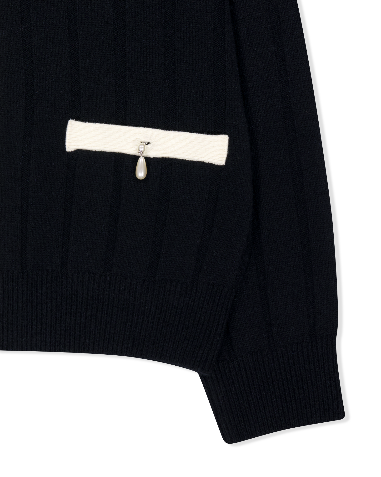 COMPOSITION - YARN: SUPERFINE MERINO WOOL 70%, CASHMERE 30% / EMBELLISHMENT: ACRYLIC PEARL.