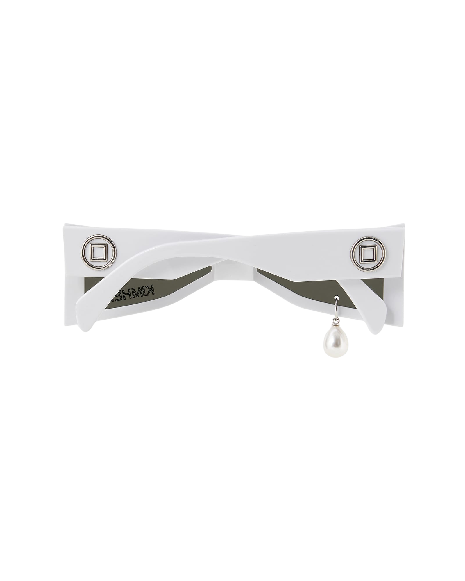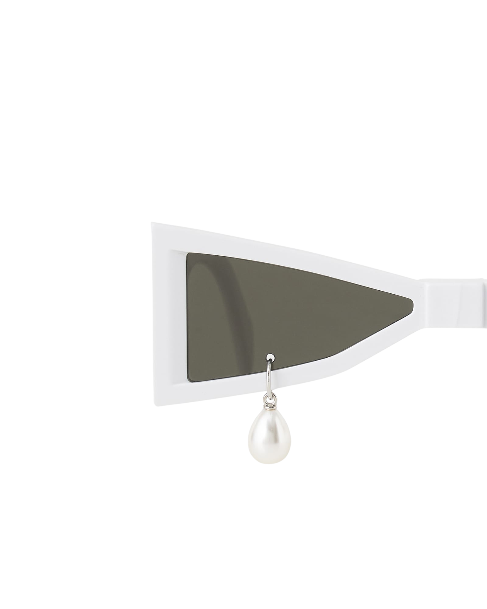 Gracefully hanging from the bottom of the frame, the tiny pearl form a tear drop that glisten subtly, creating a captivating visual allure.