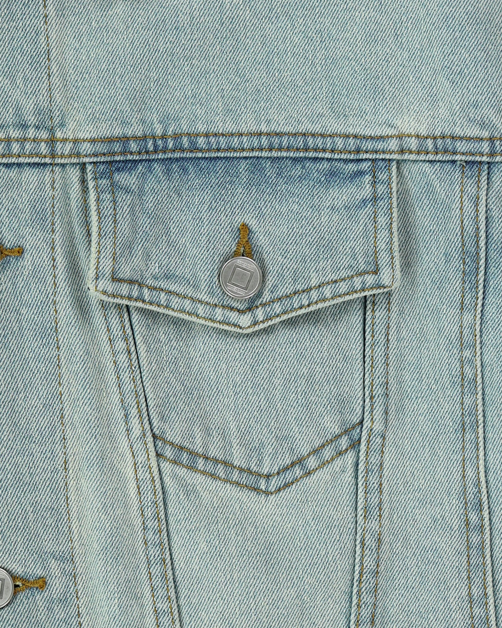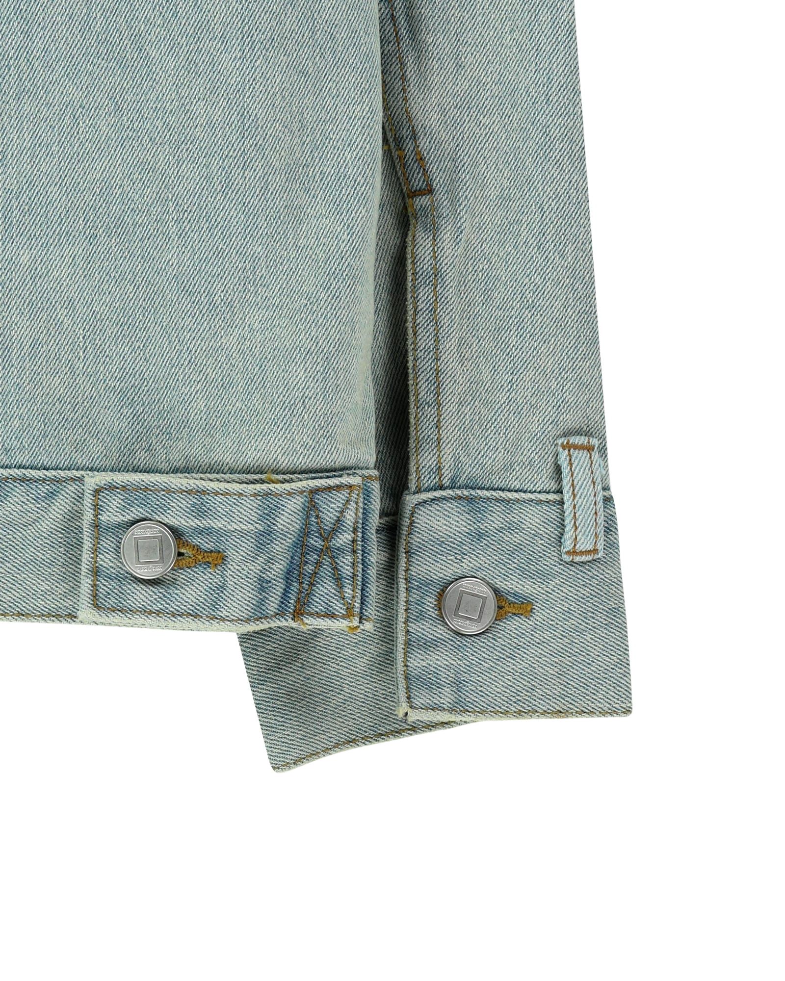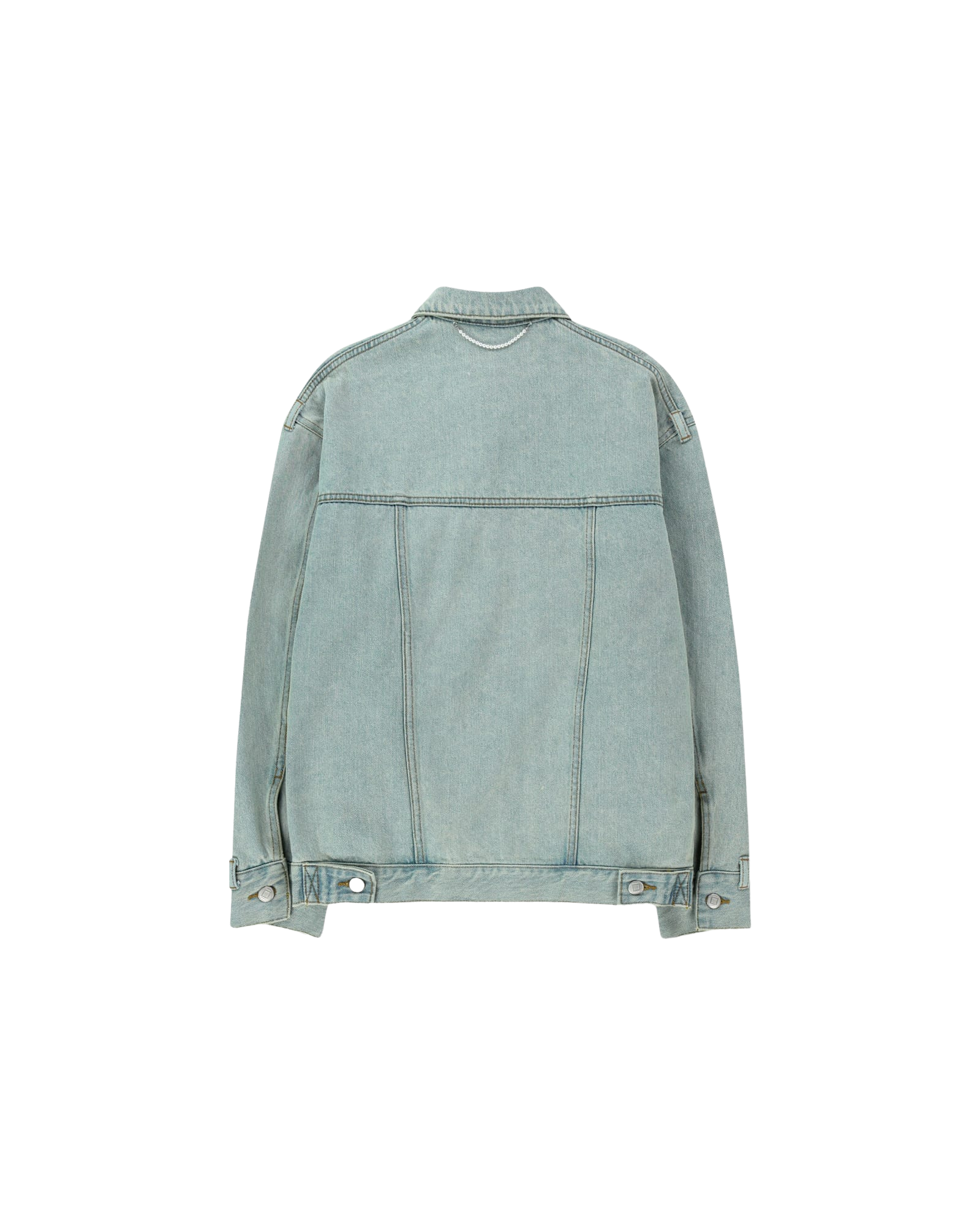 A loose-fit denim jacket with a spread collar, made from 100% cotton denim.