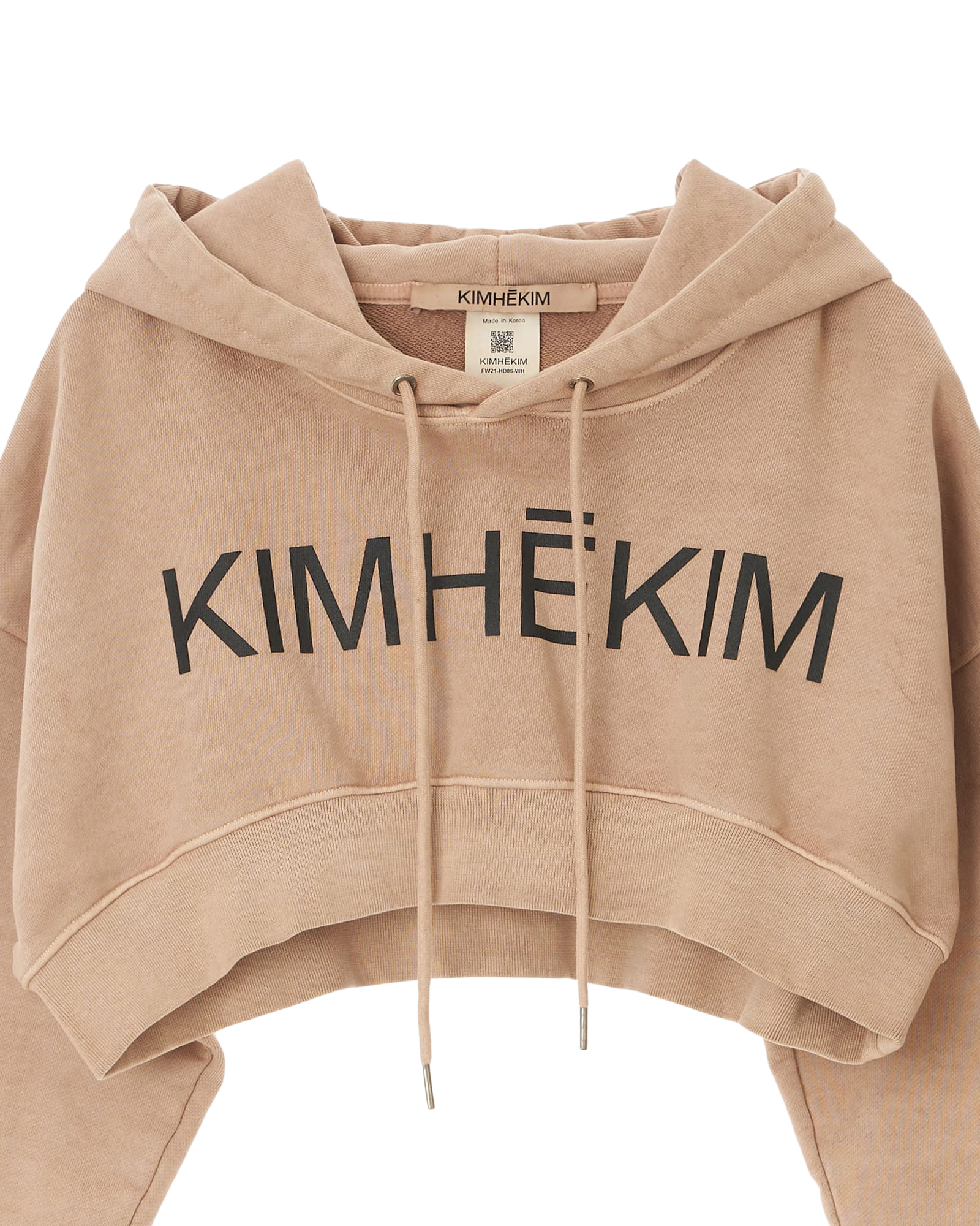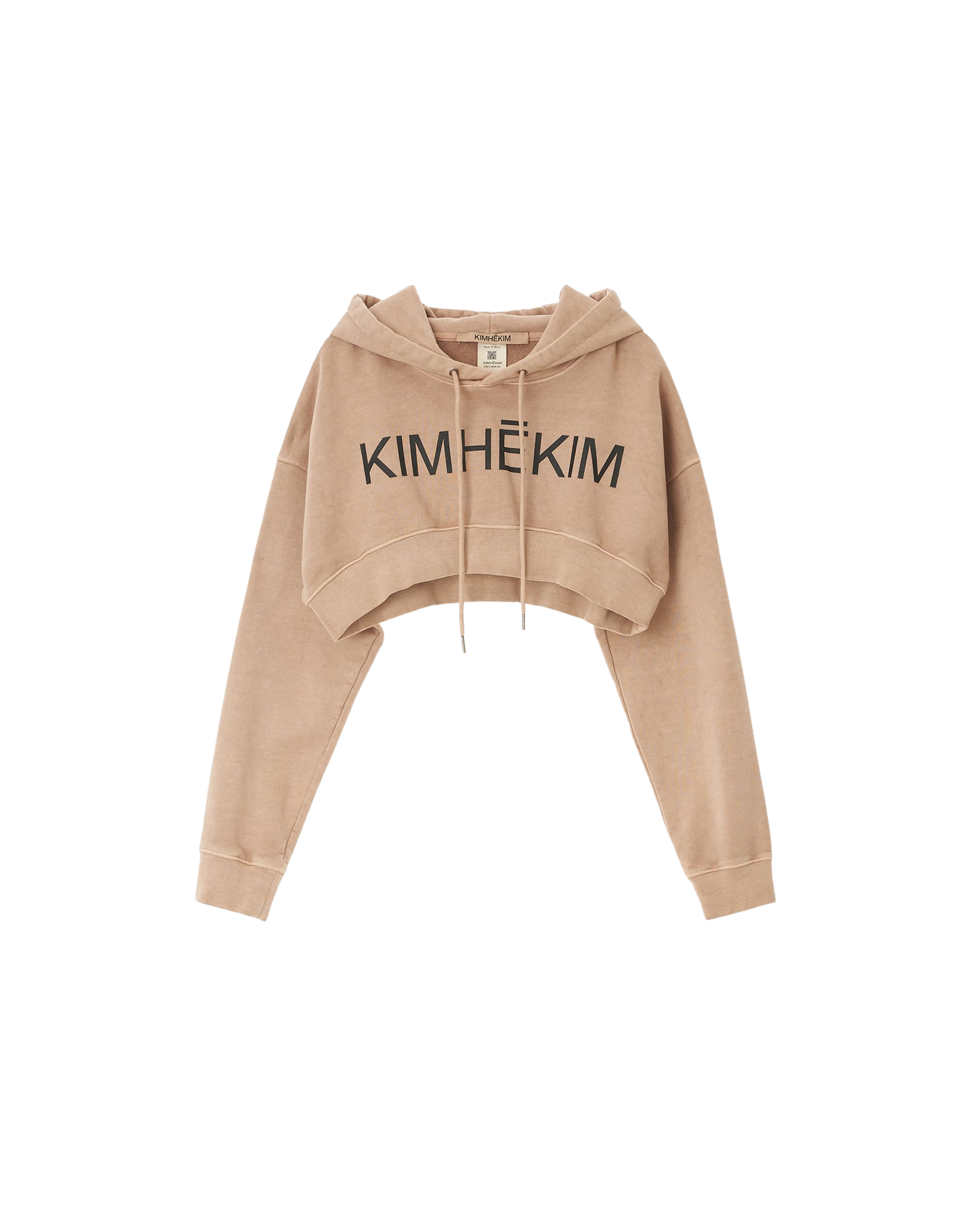 Pigment Logo Cropped Hoodie (Rose Beige)