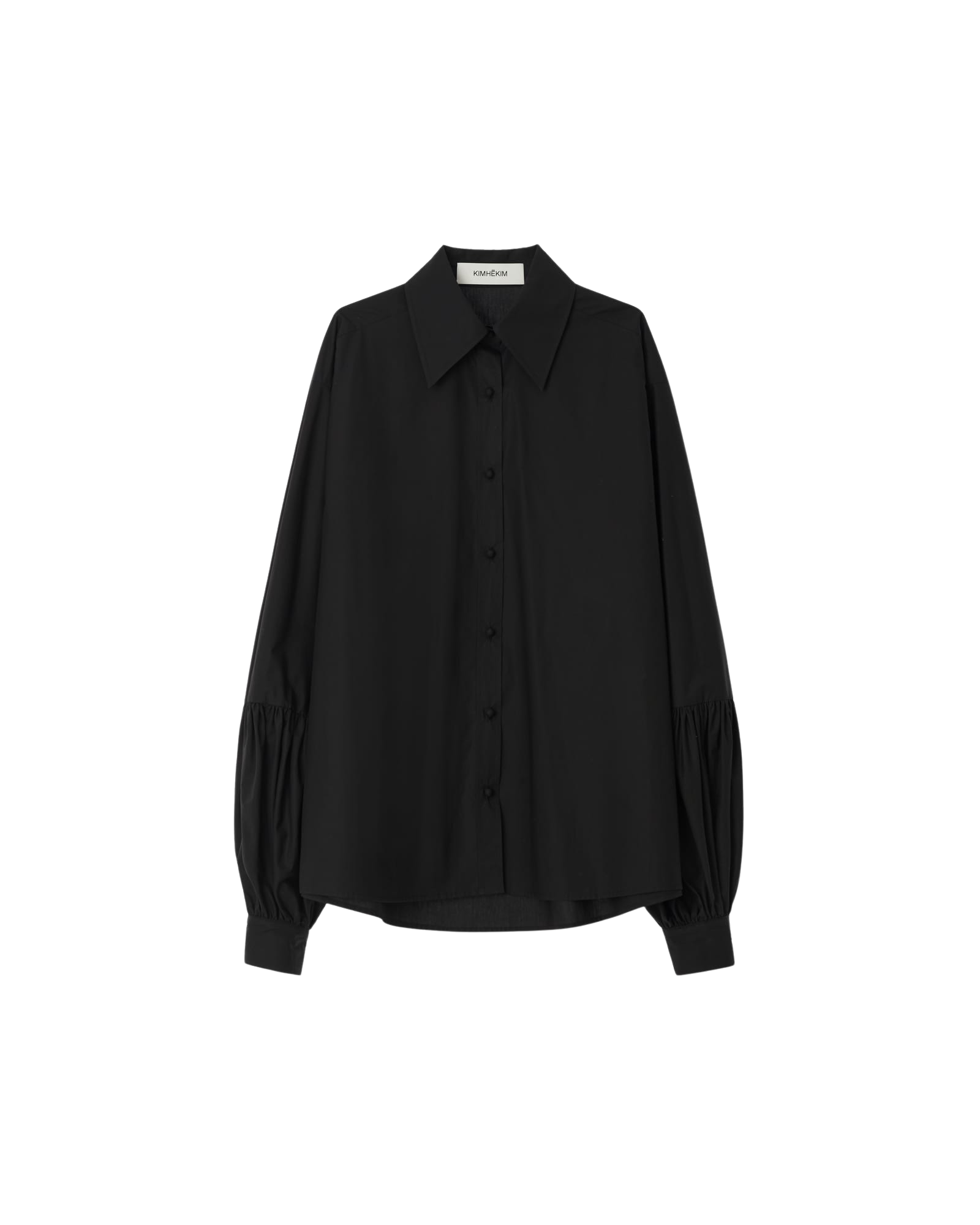 Puff Sleeve Oversized Cotton Shirt (Black)