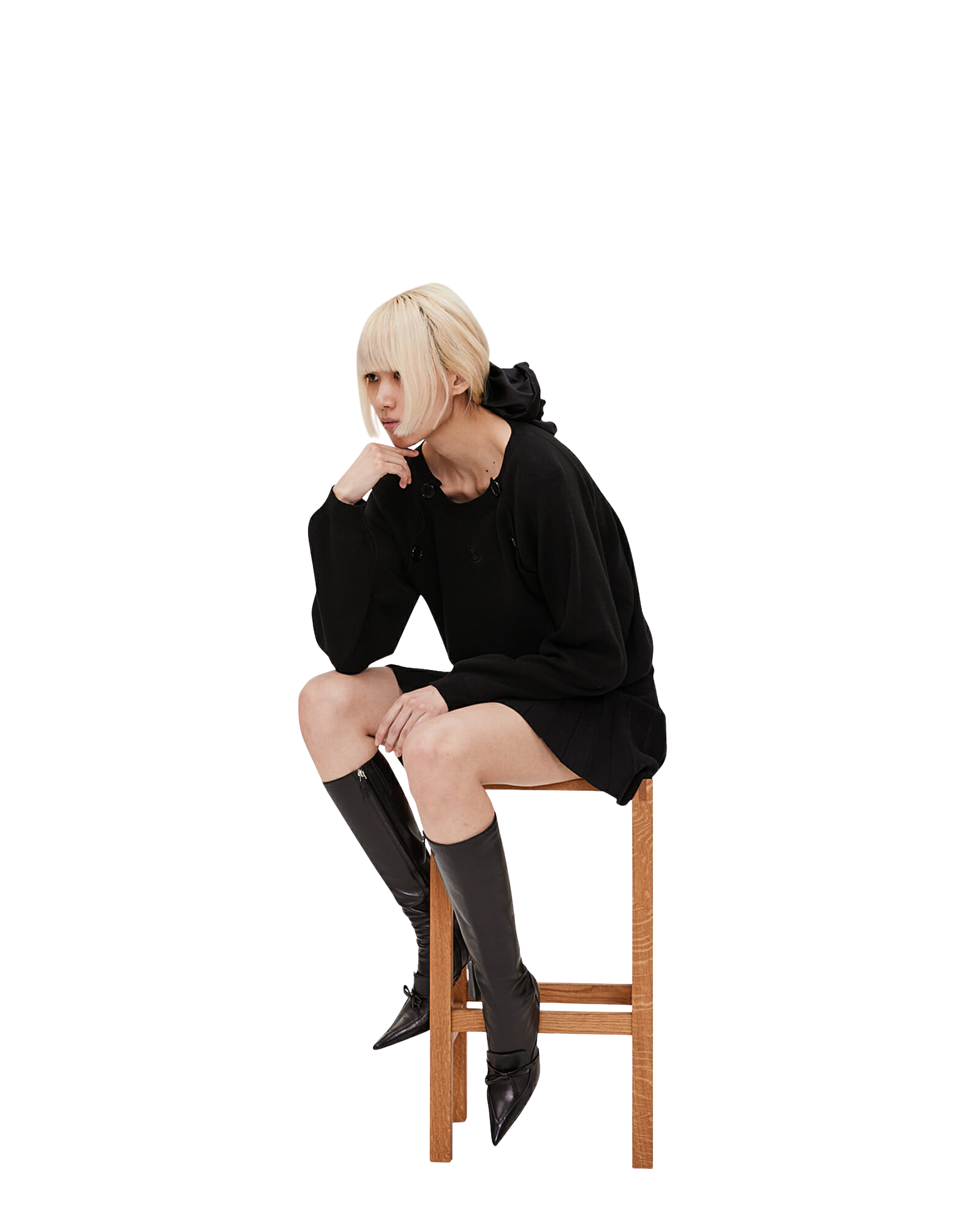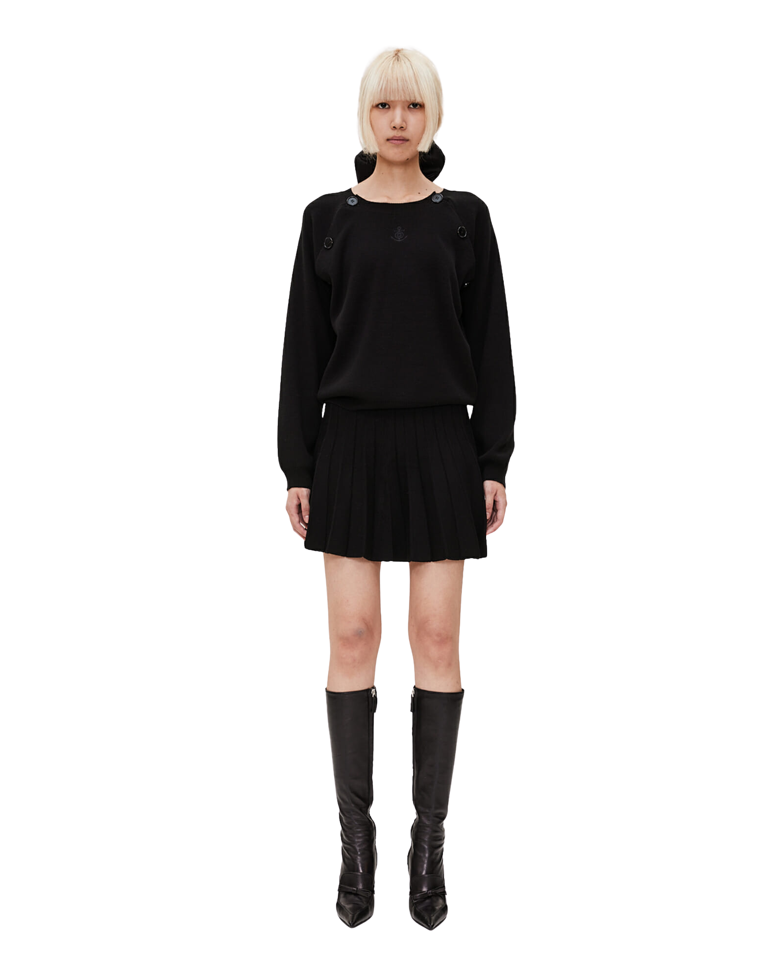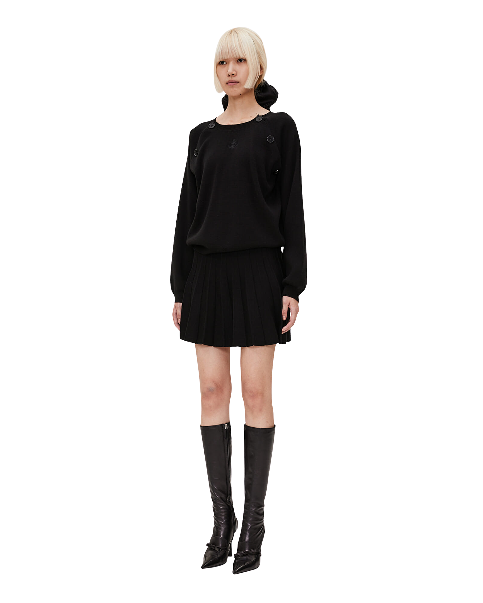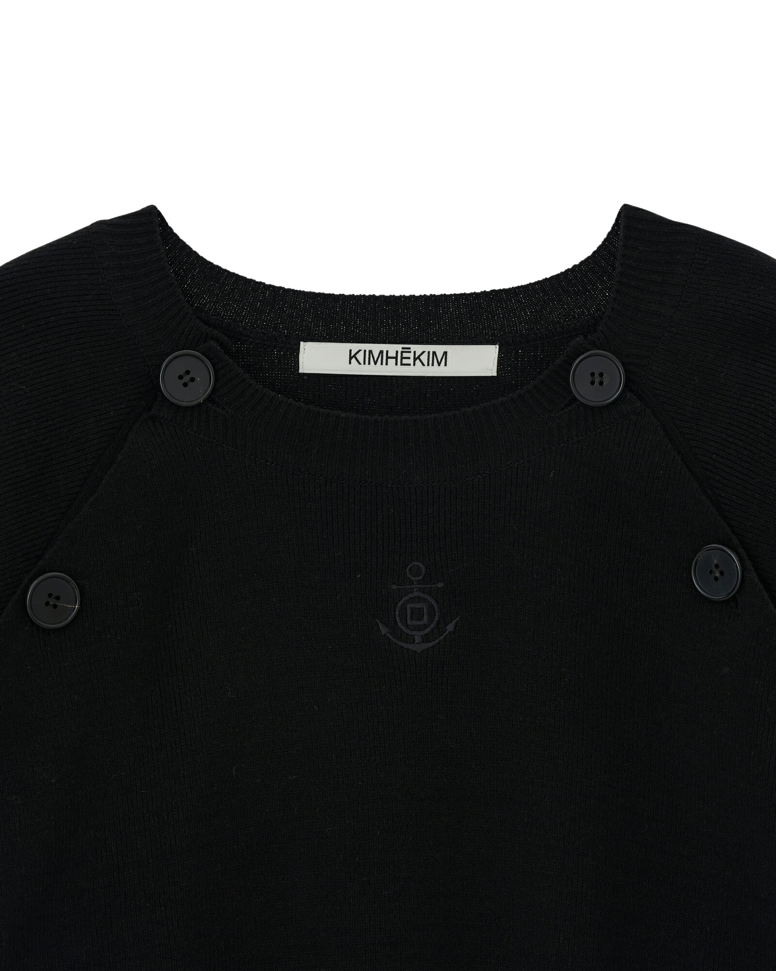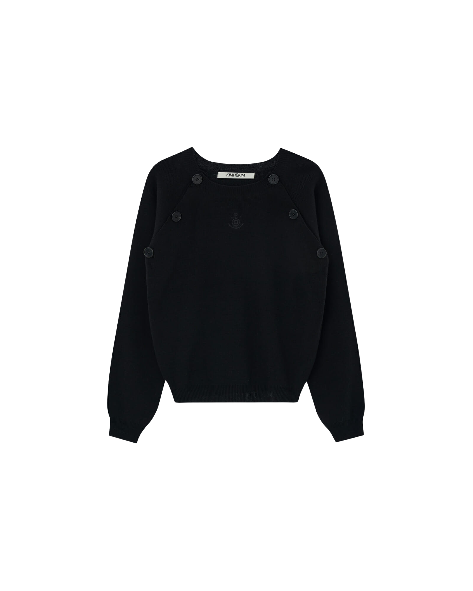 Raglan Sleeved Cotton-Blended Sweater (Black)
