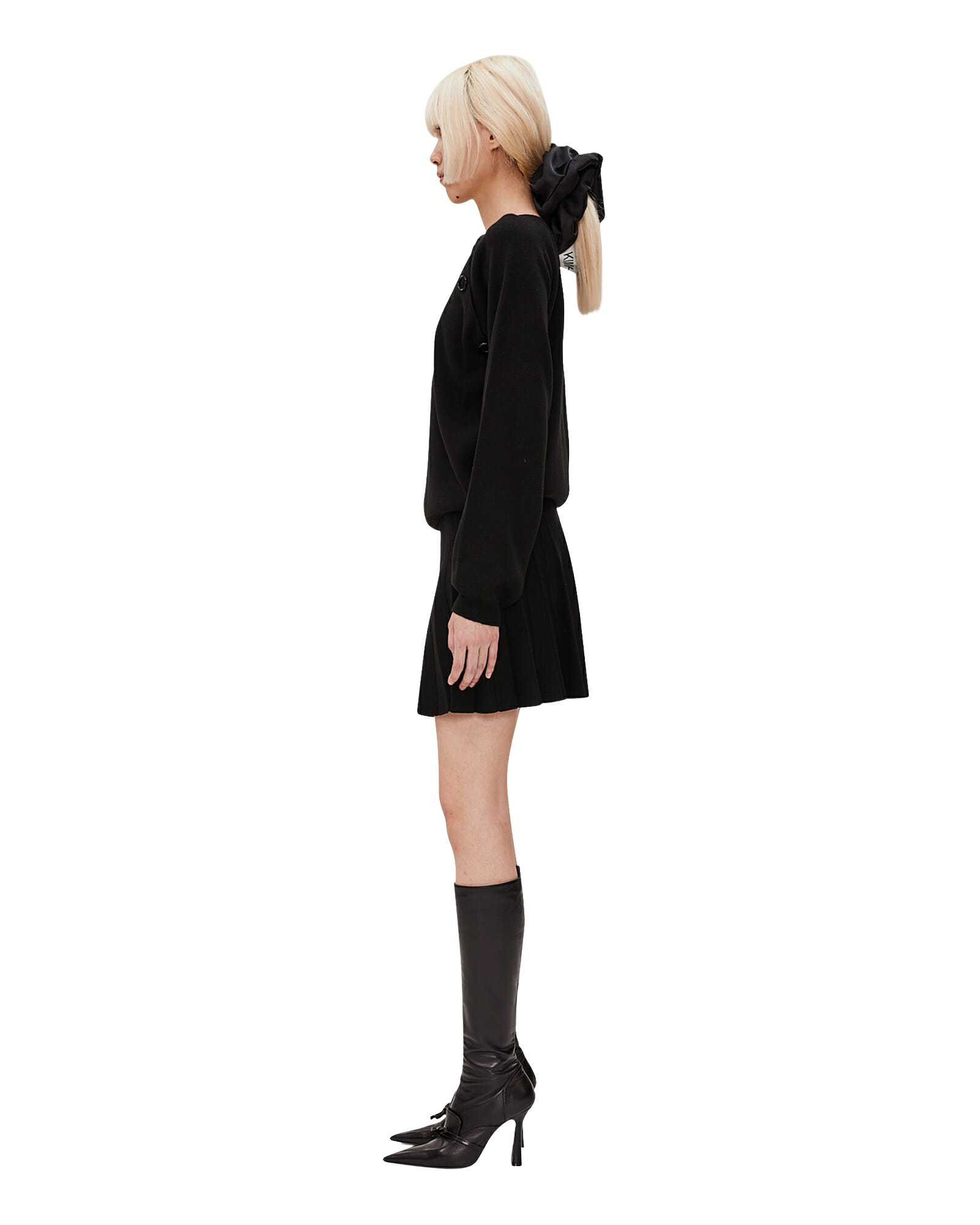 Pants Detailed Pleated Midi Skirt (Black)