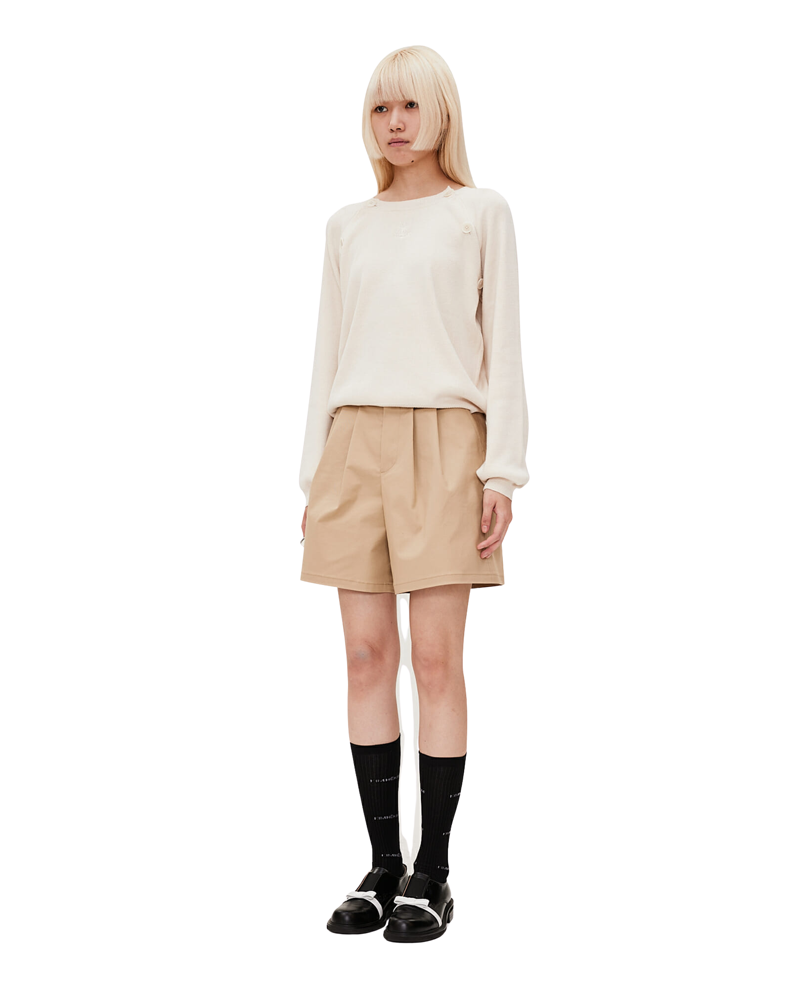 Raglan Sleeved Cotton-Blended Sweater (Ivory)