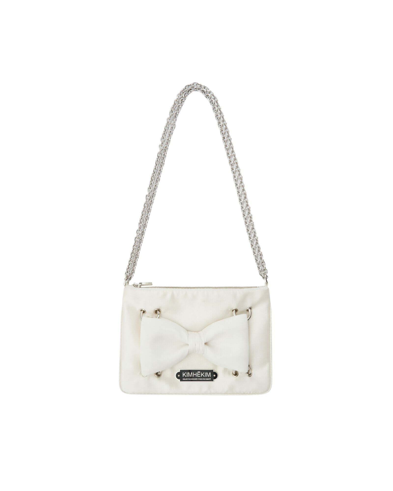 Big Ribbon Embellished Faux-Pearl Necklace (White)