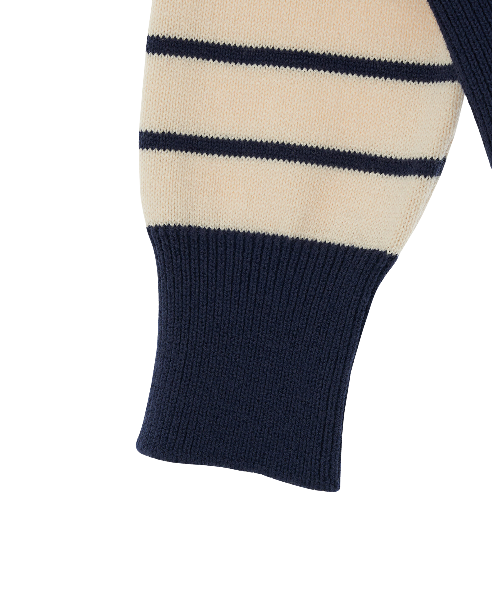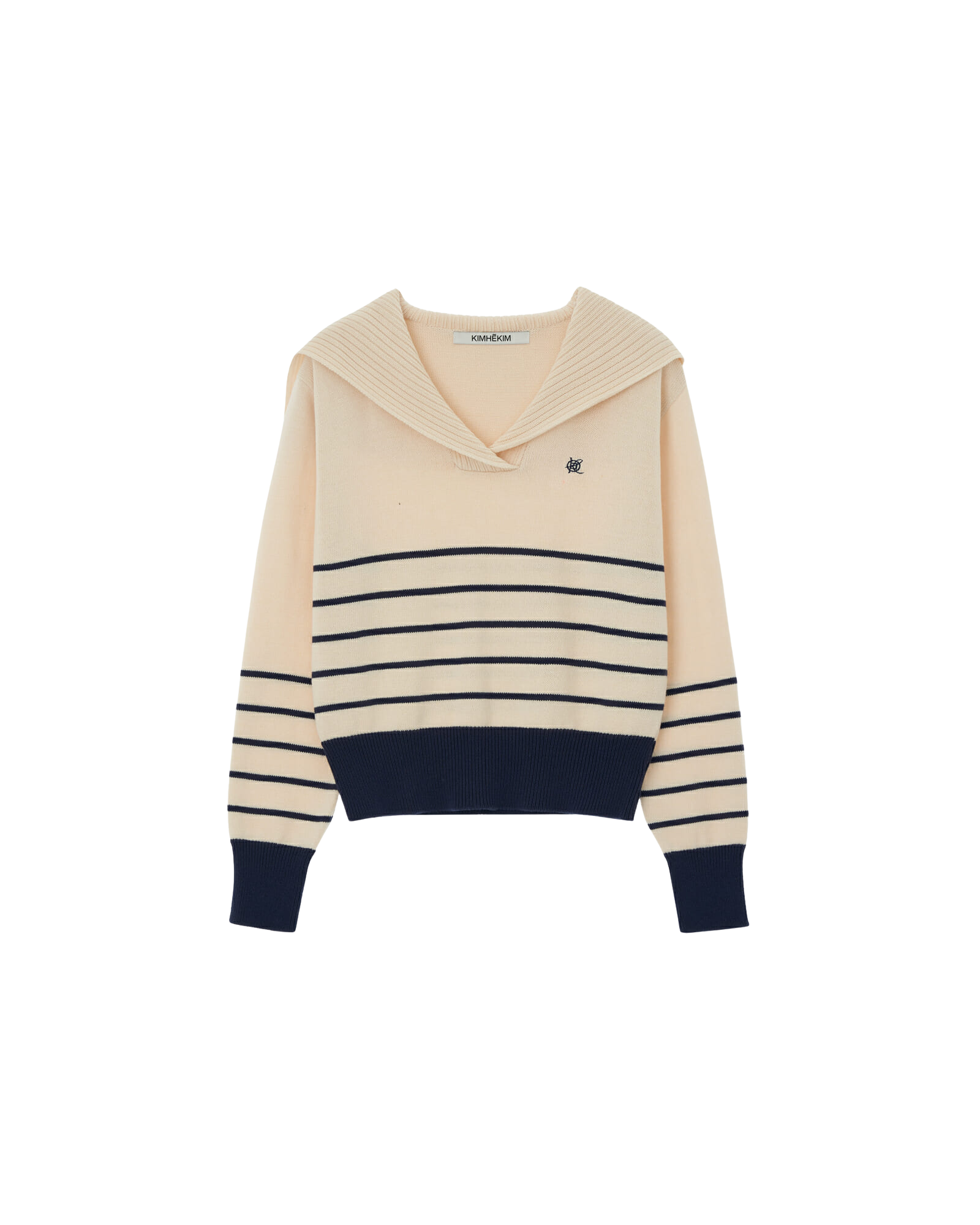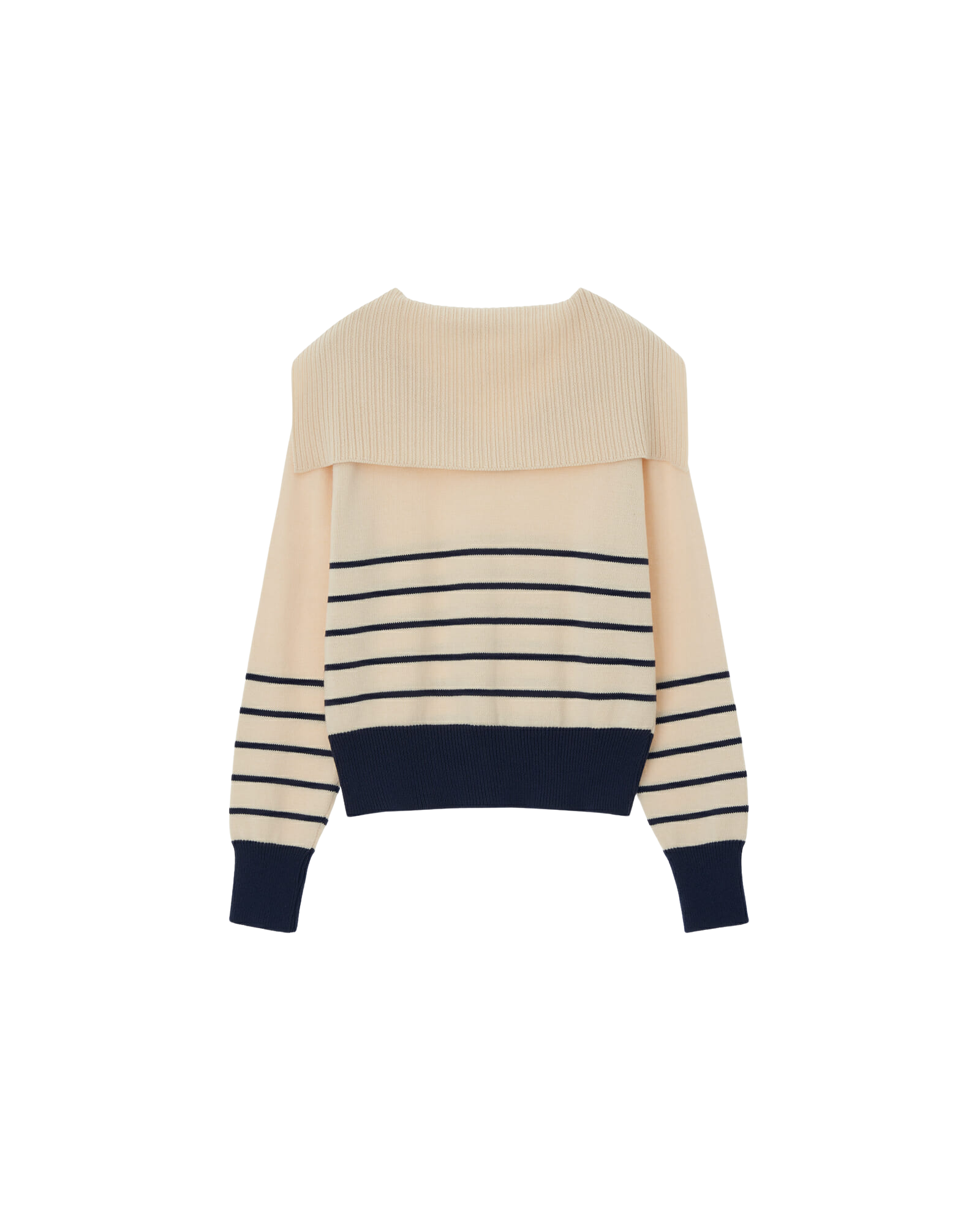 Sailor-Collar Striped Wool-Cotton Sweater (Navy/Ivory)