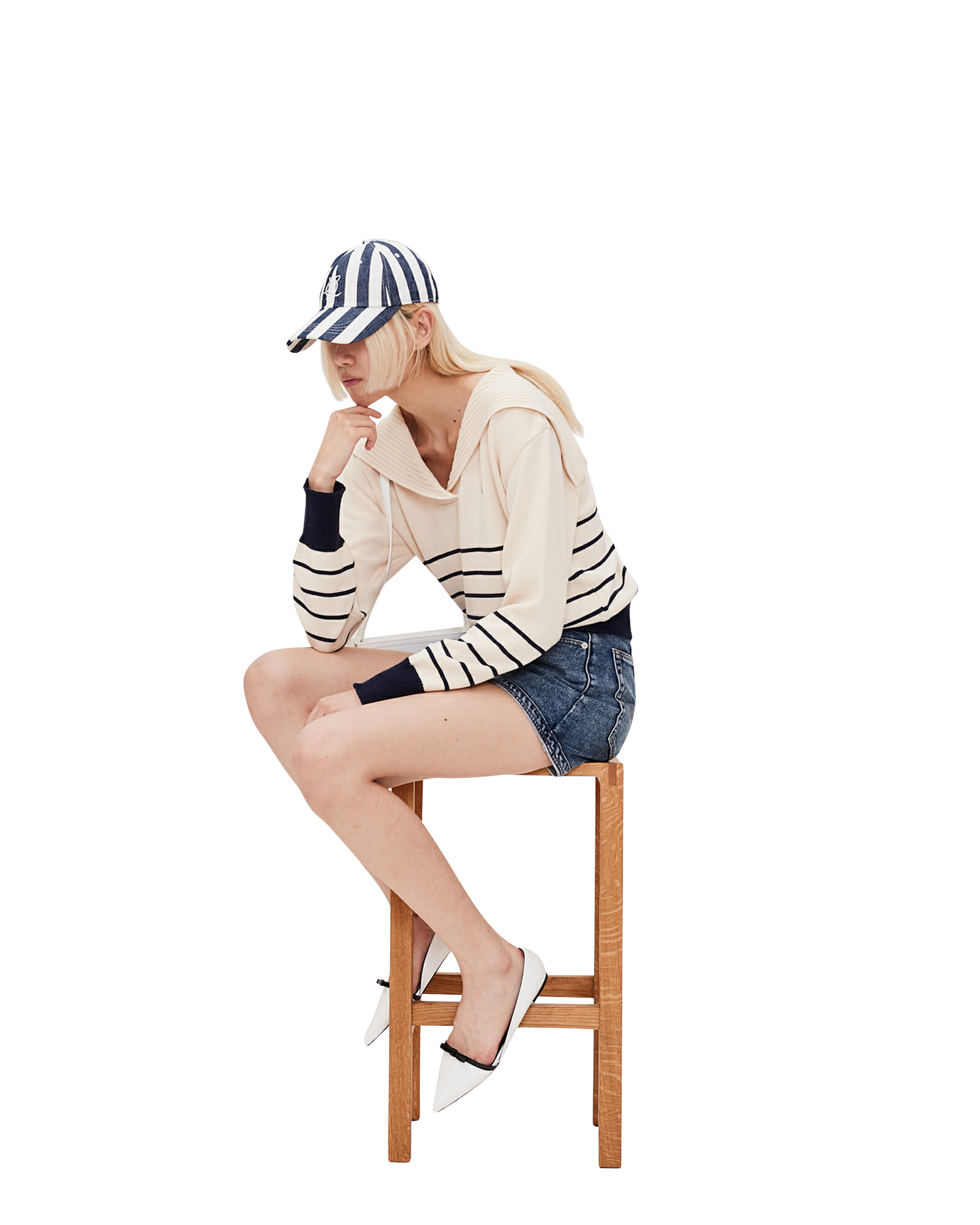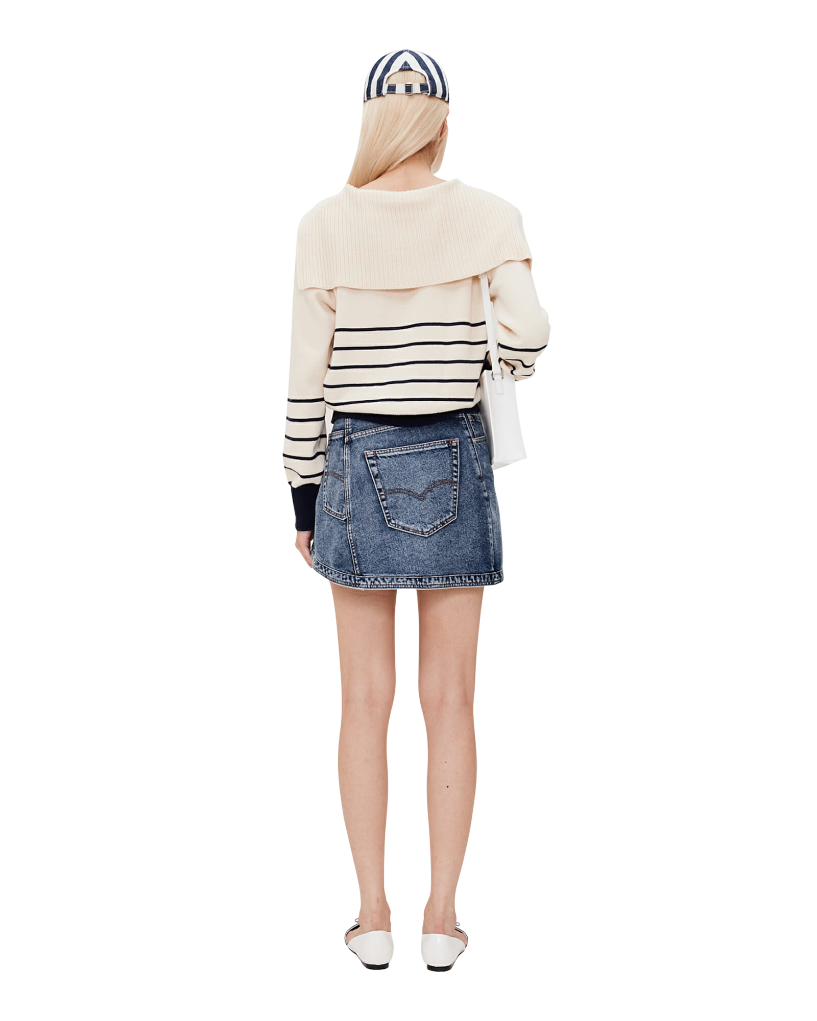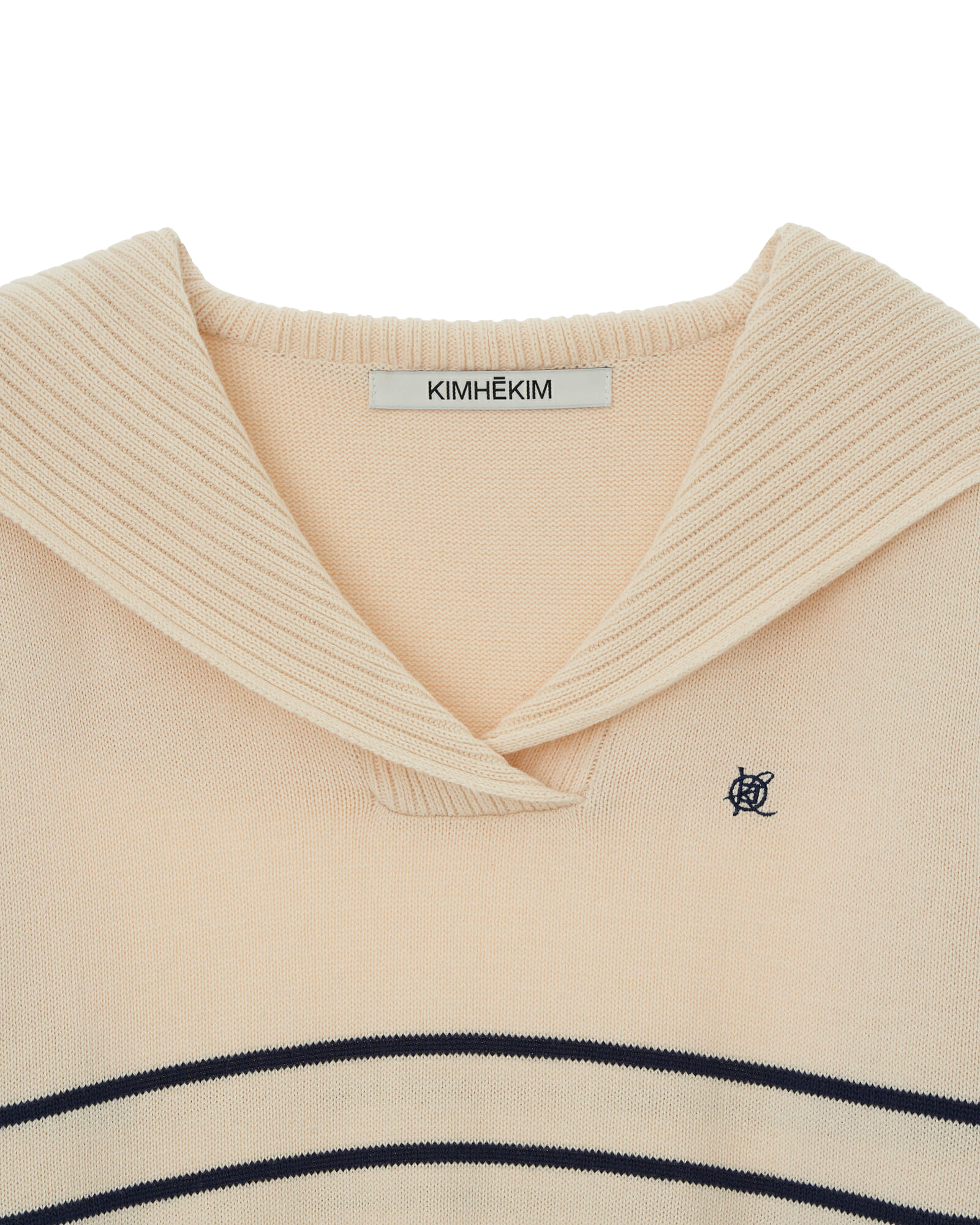 Sailor-Collar Striped Wool-Cotton Sweater (Navy/Ivory)