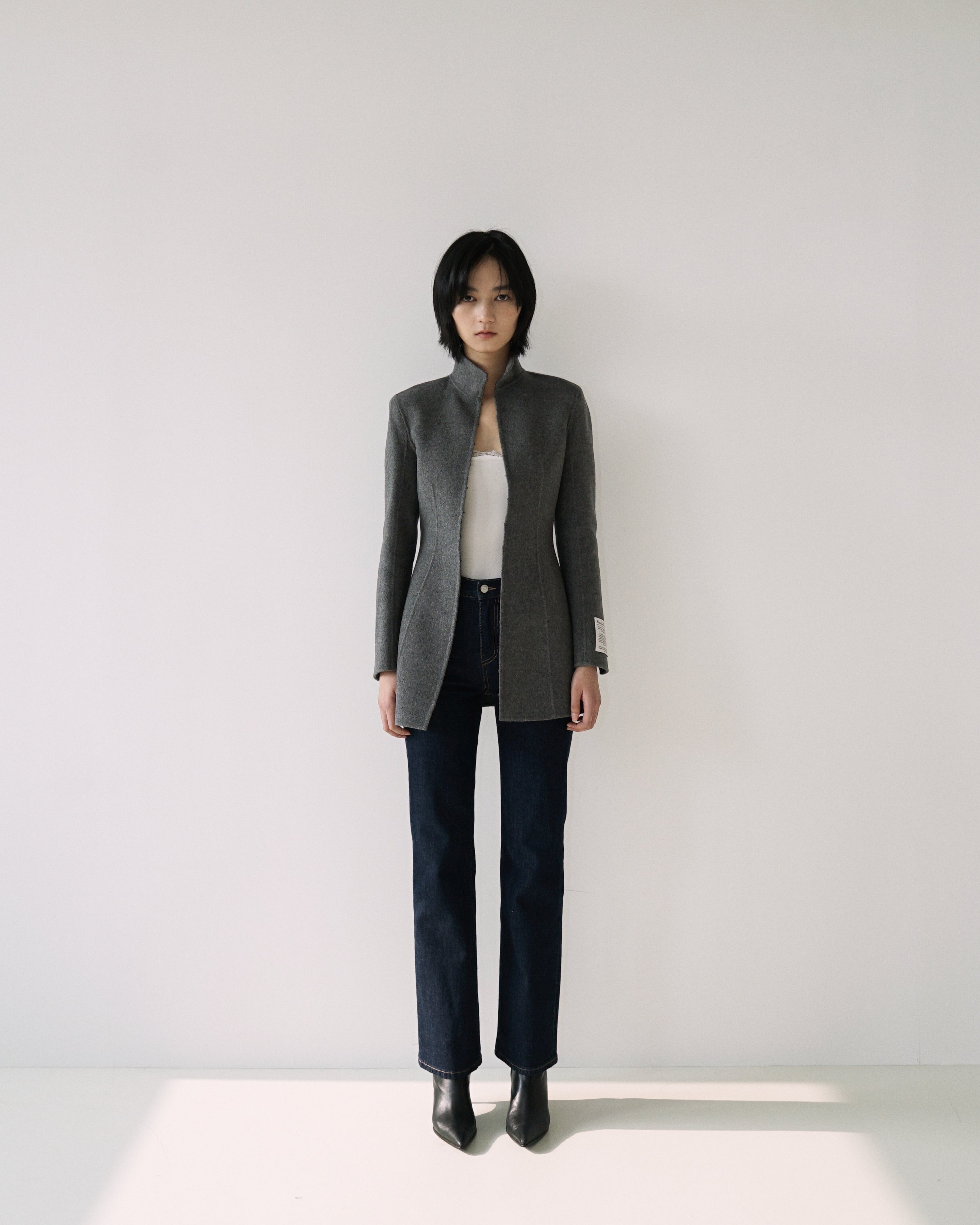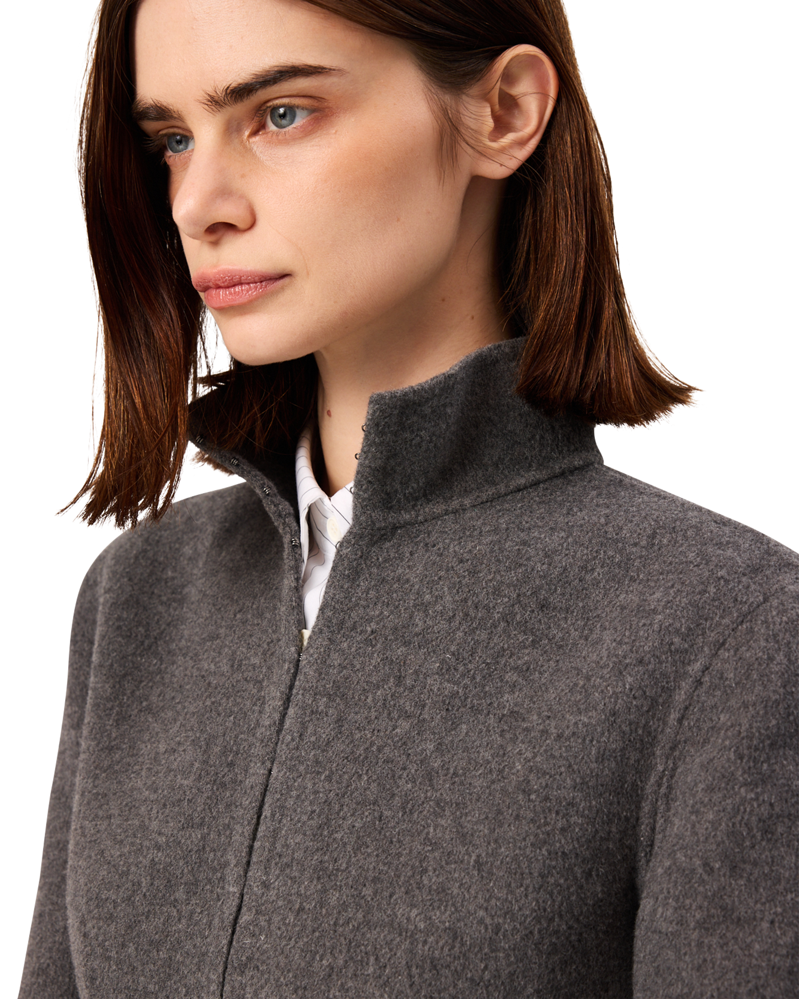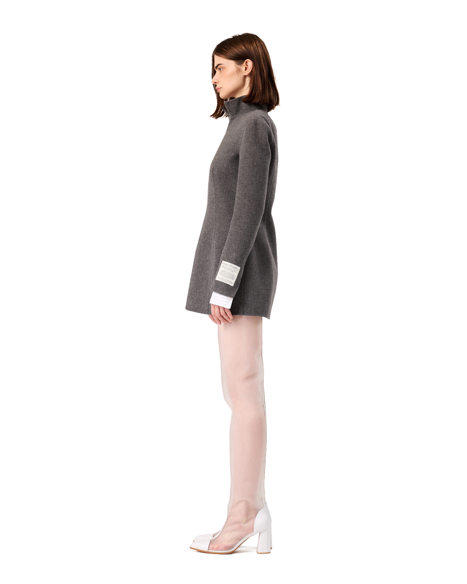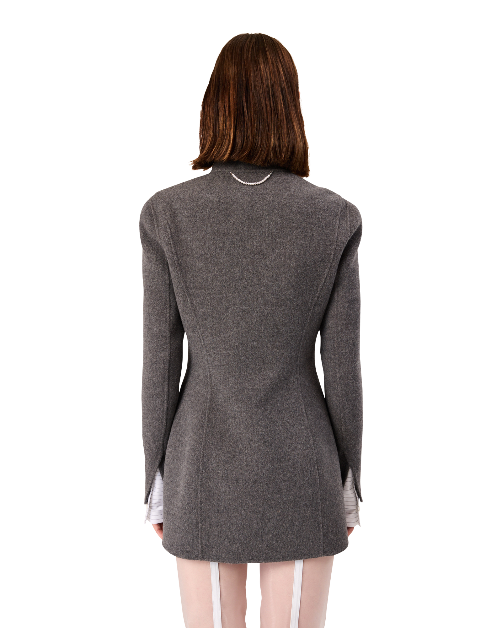 -A semi-hourglass fit jacket made from a wool-cashmere blend fabric.