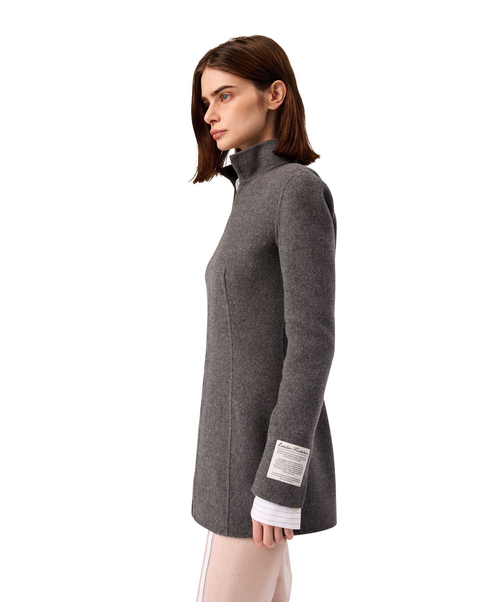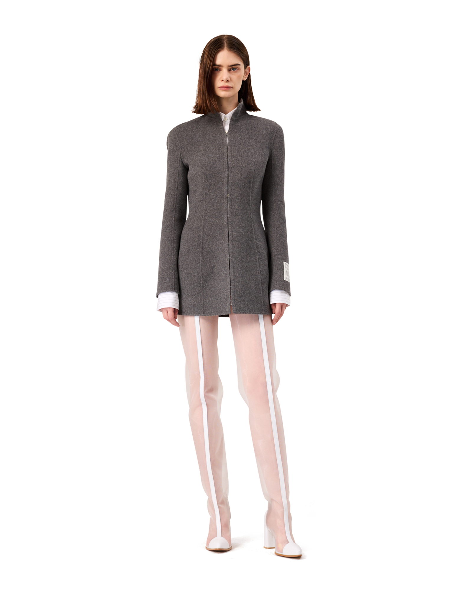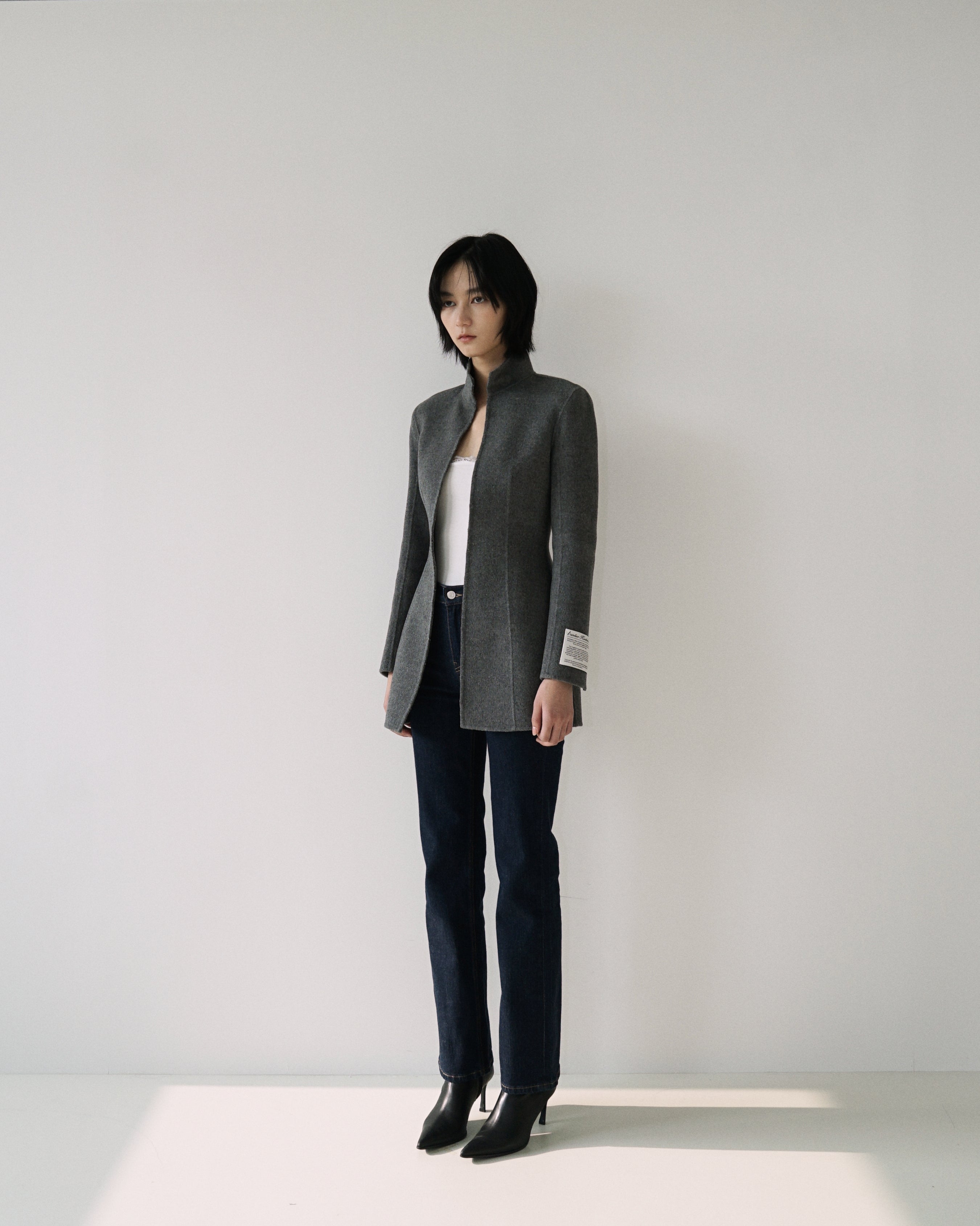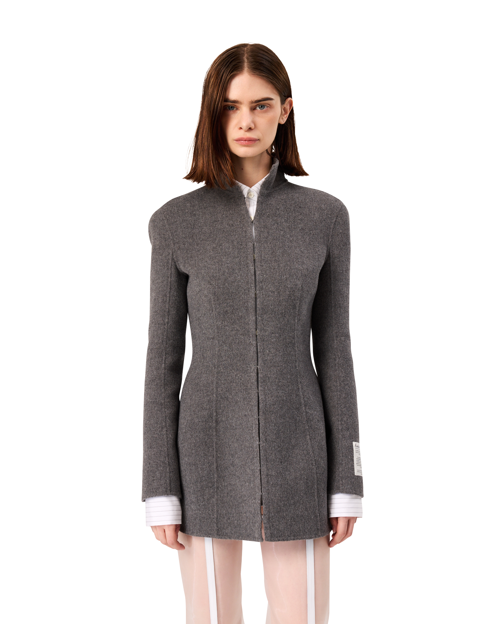-A semi-hourglass fit jacket made from a wool-cashmere blend fabric.