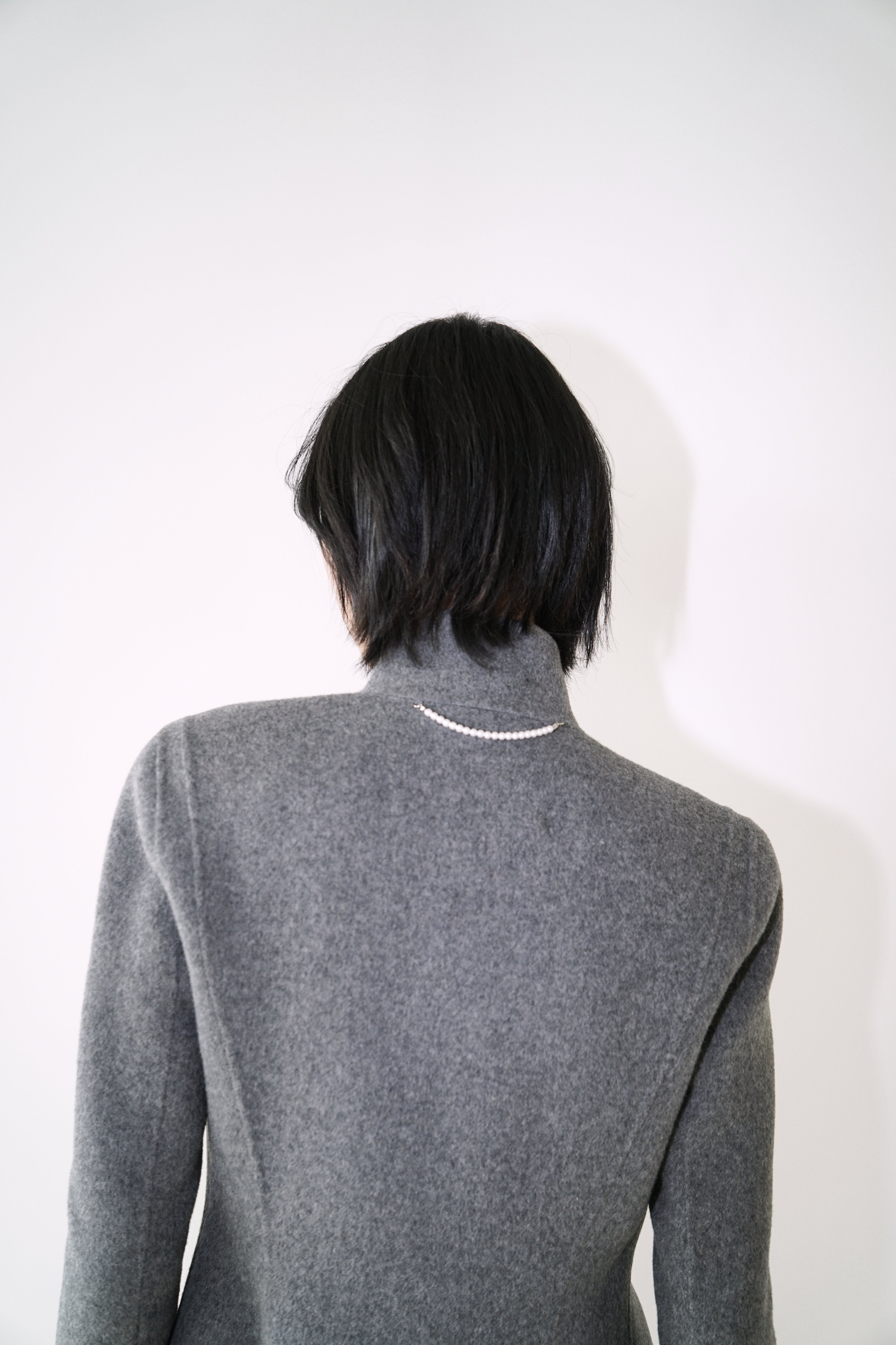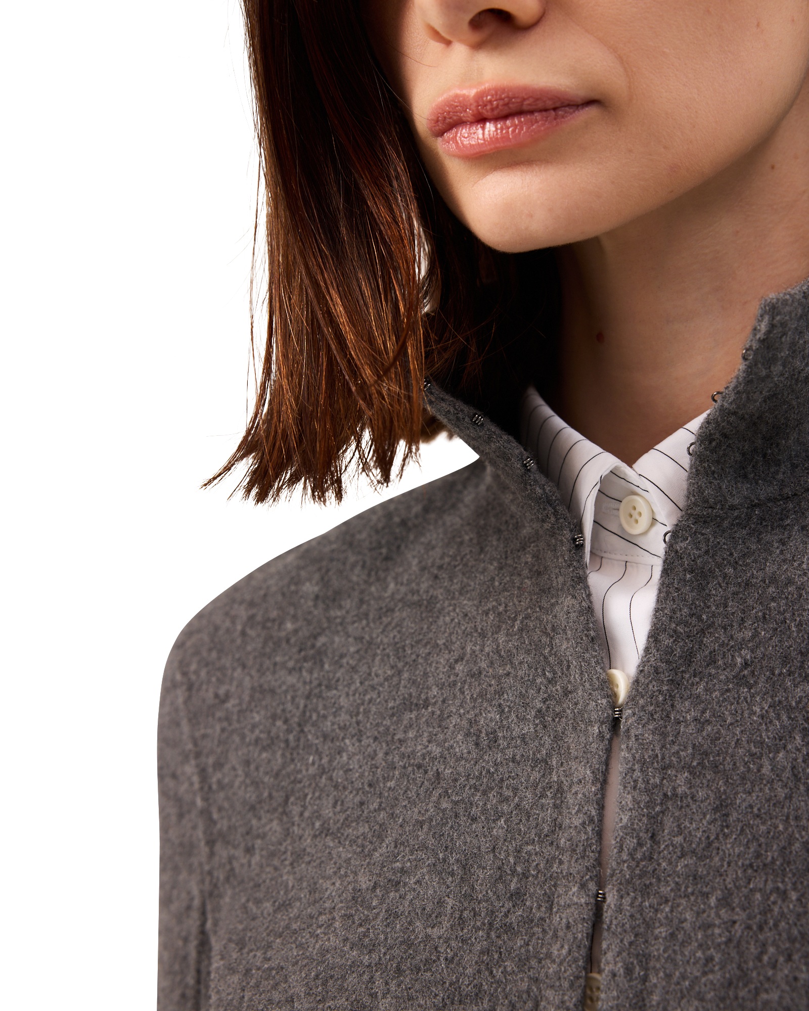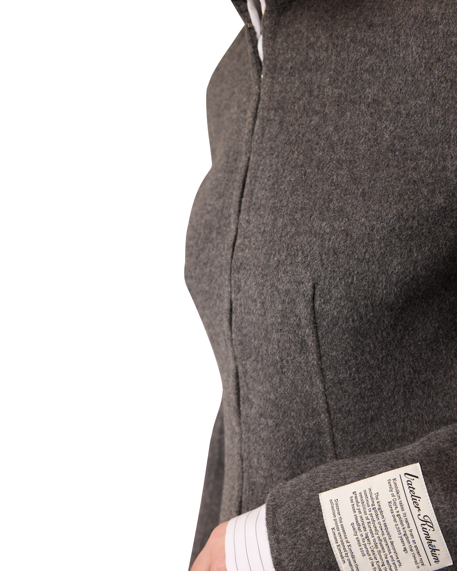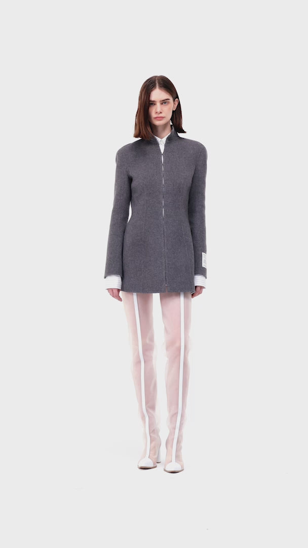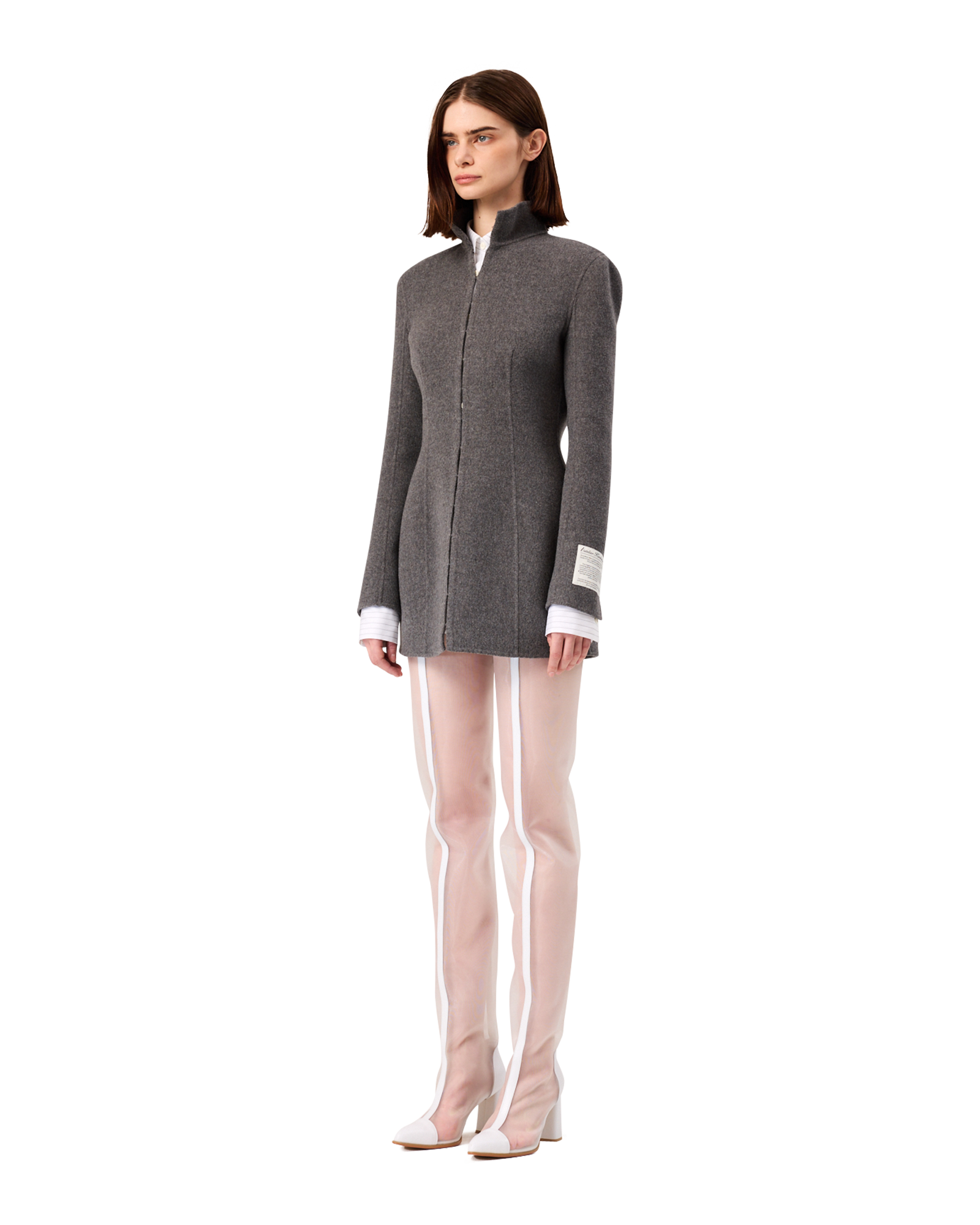-A semi-hourglass fit jacket made from a wool-cashmere blend fabric.