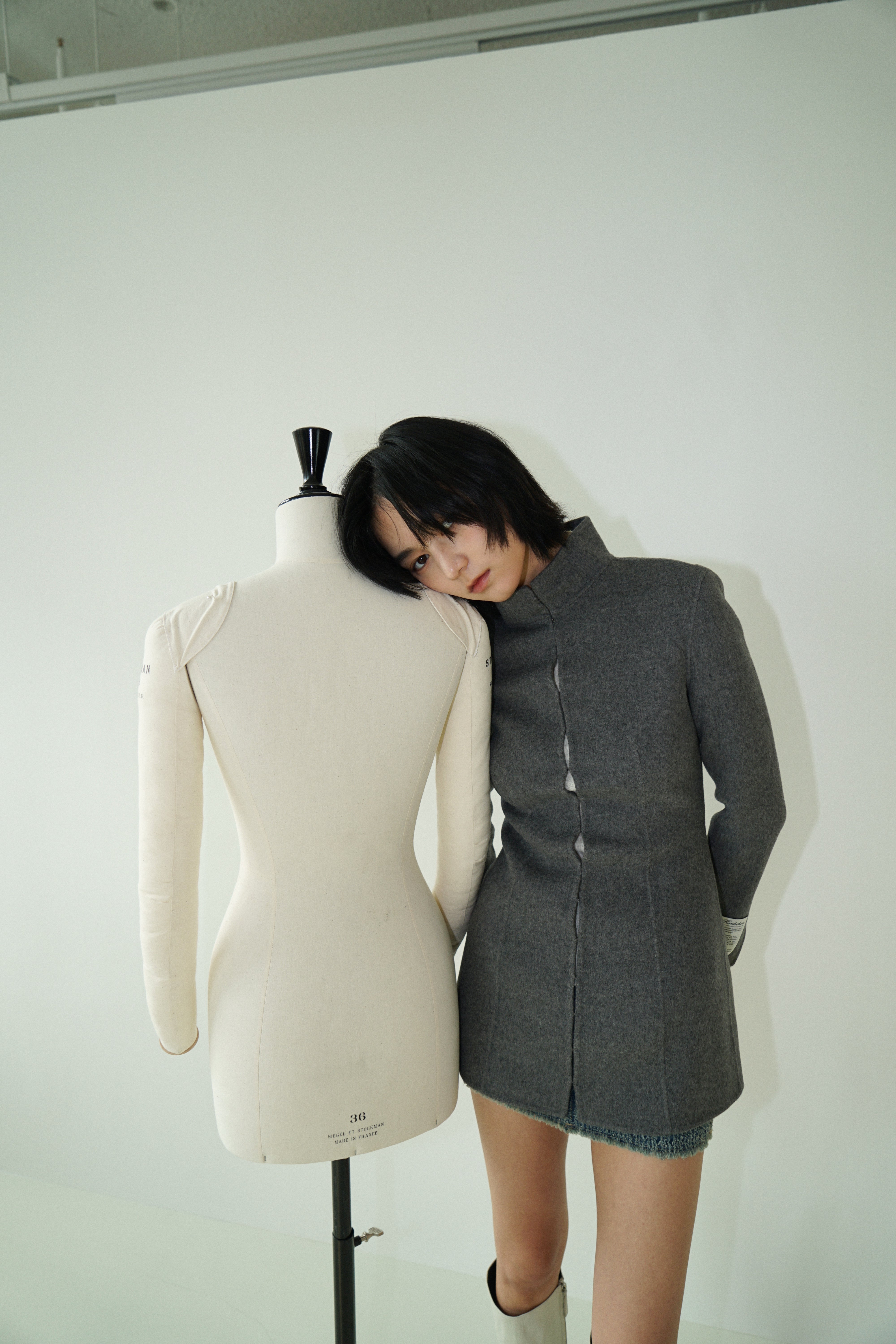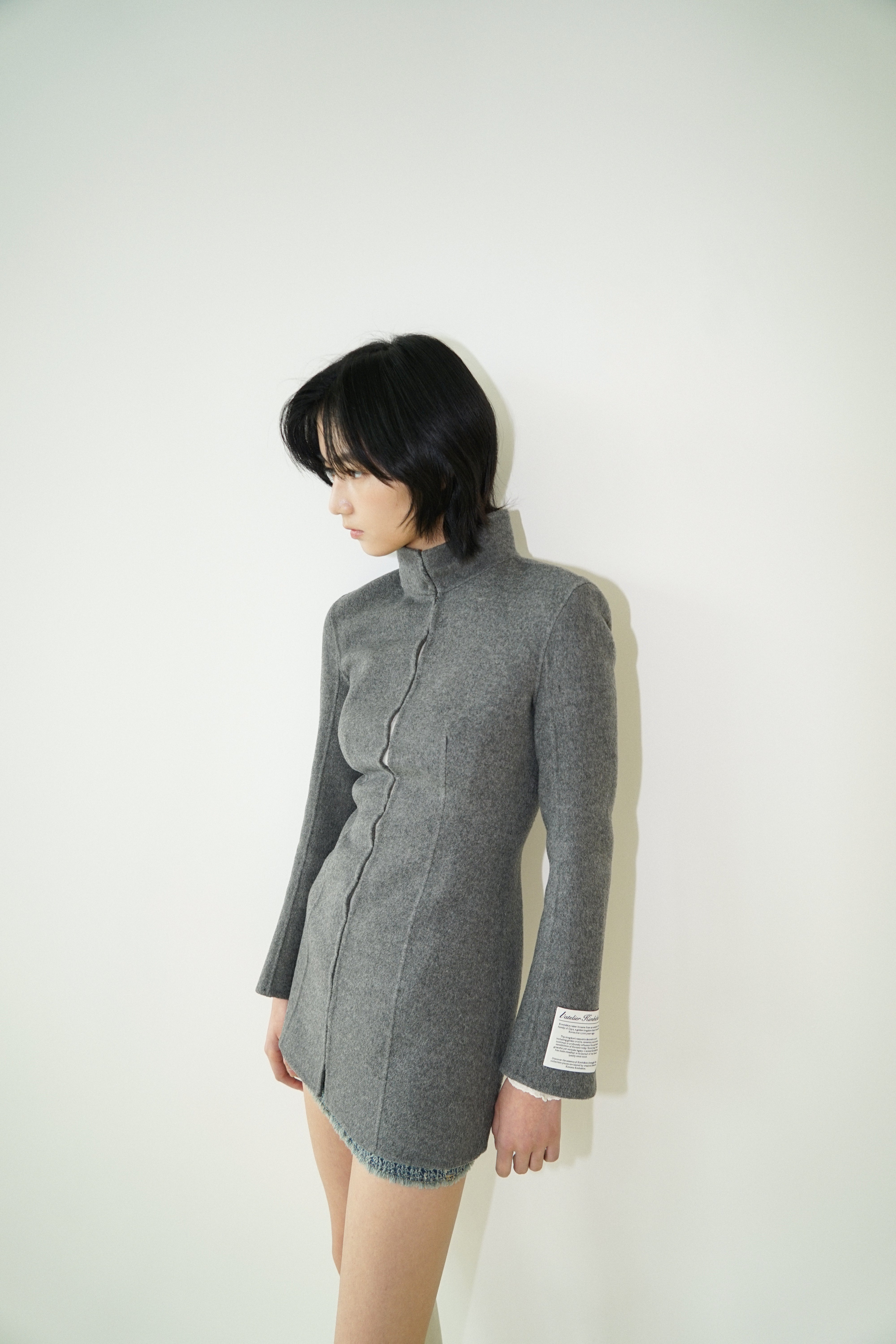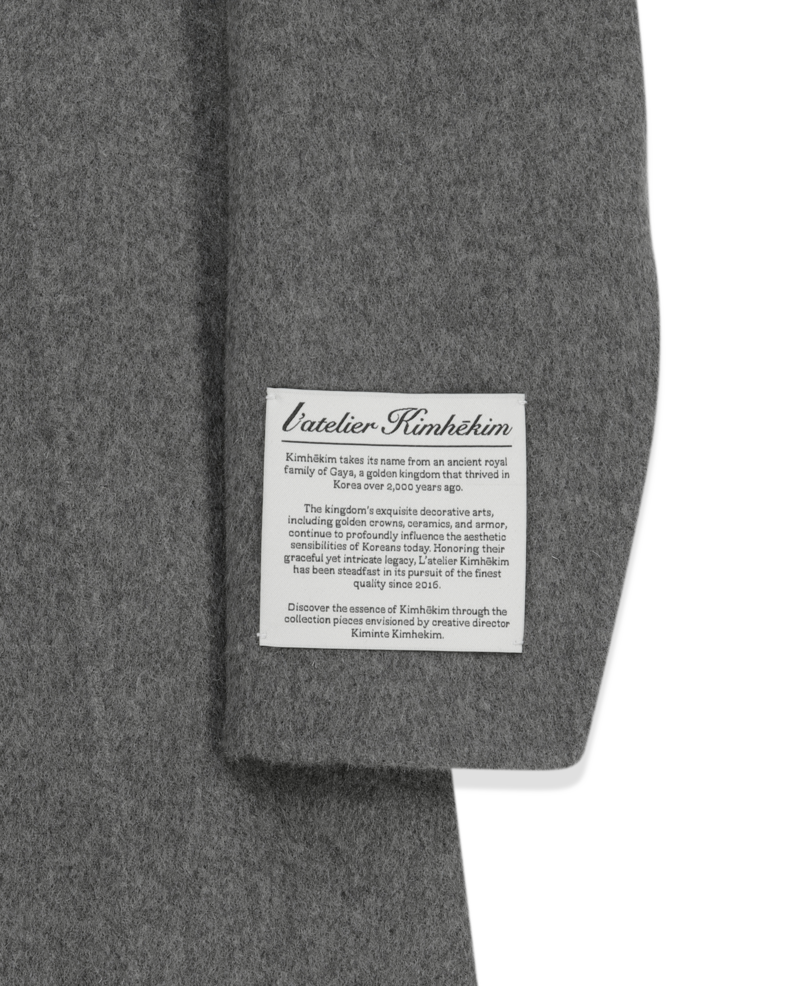 -Detailed with a stitched 'Atelier KIMHĒKIM' label on the sleeve.