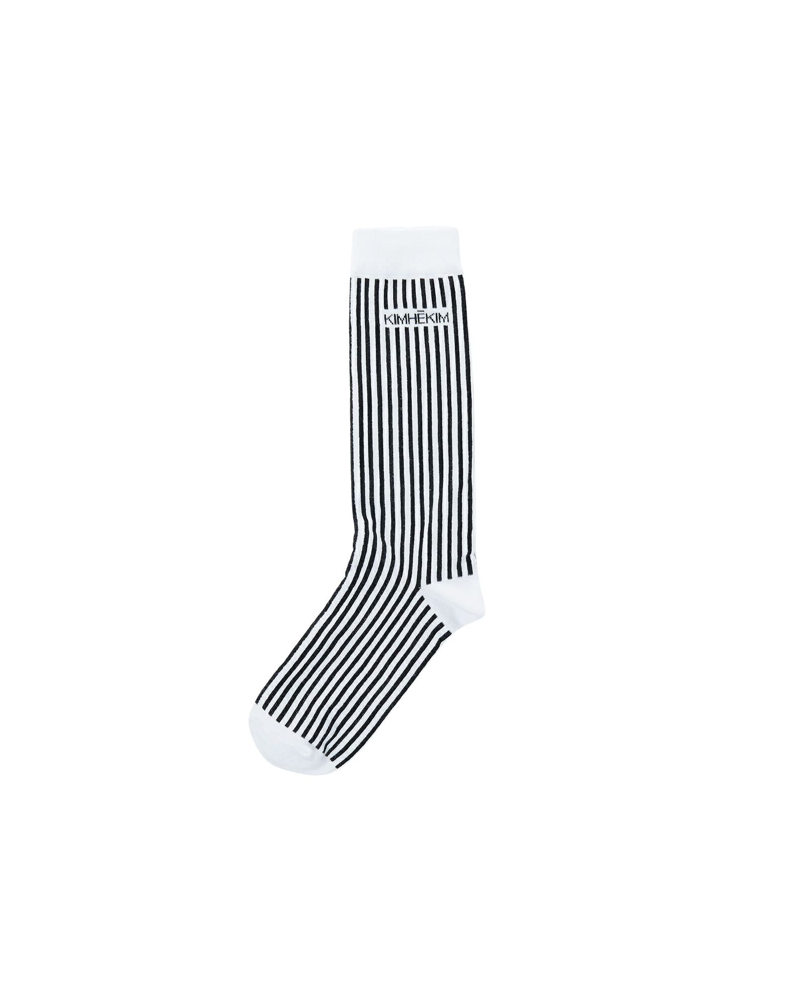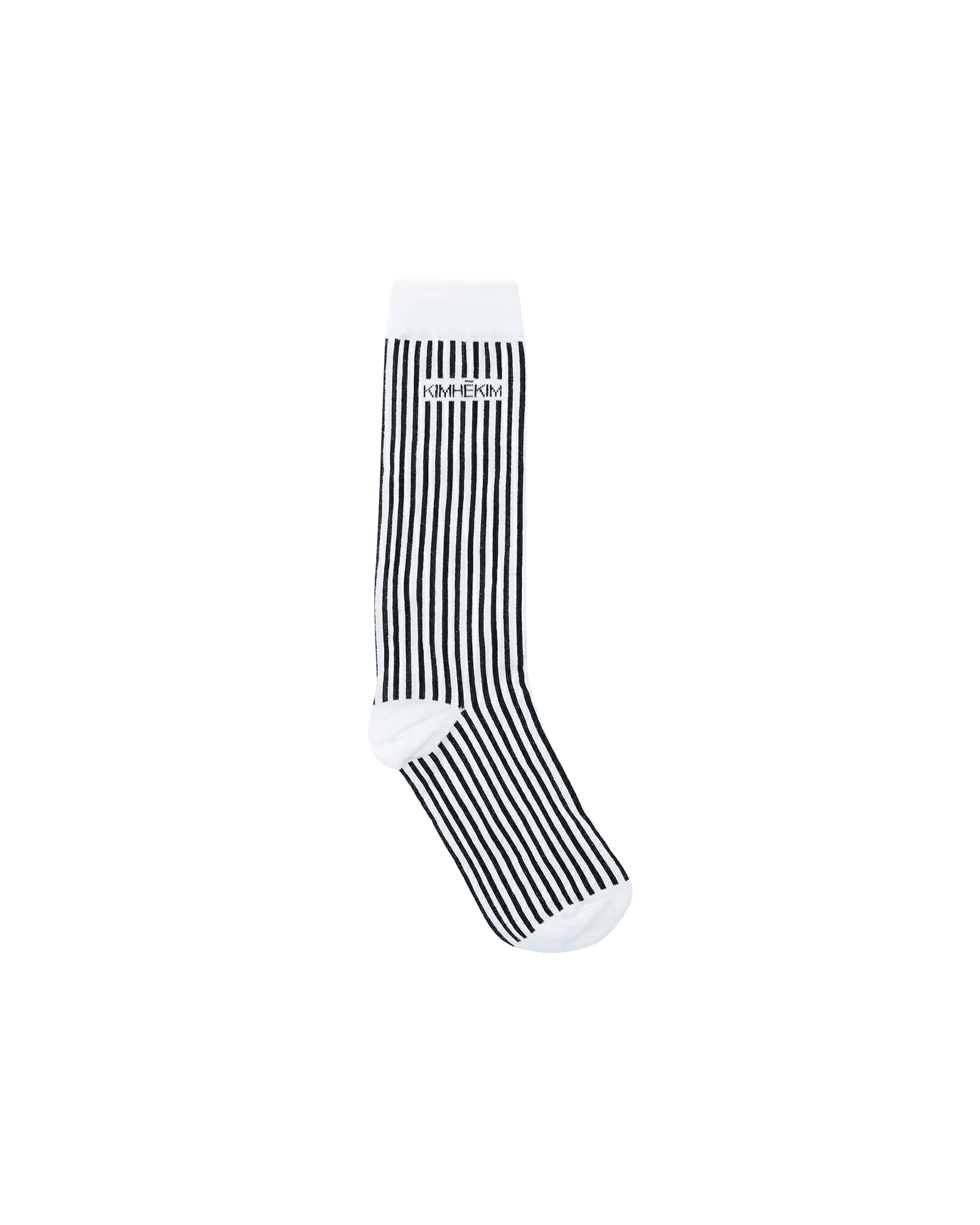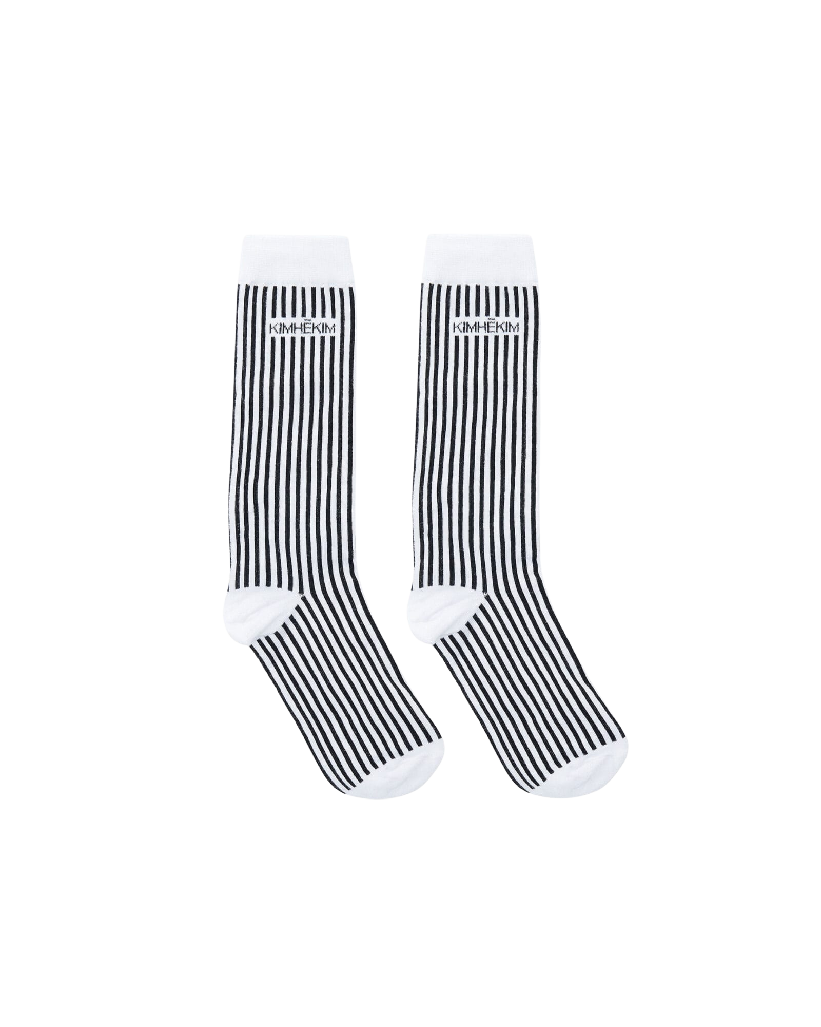 Striped Cotton-Blend Long Socks (Black/Ivory)