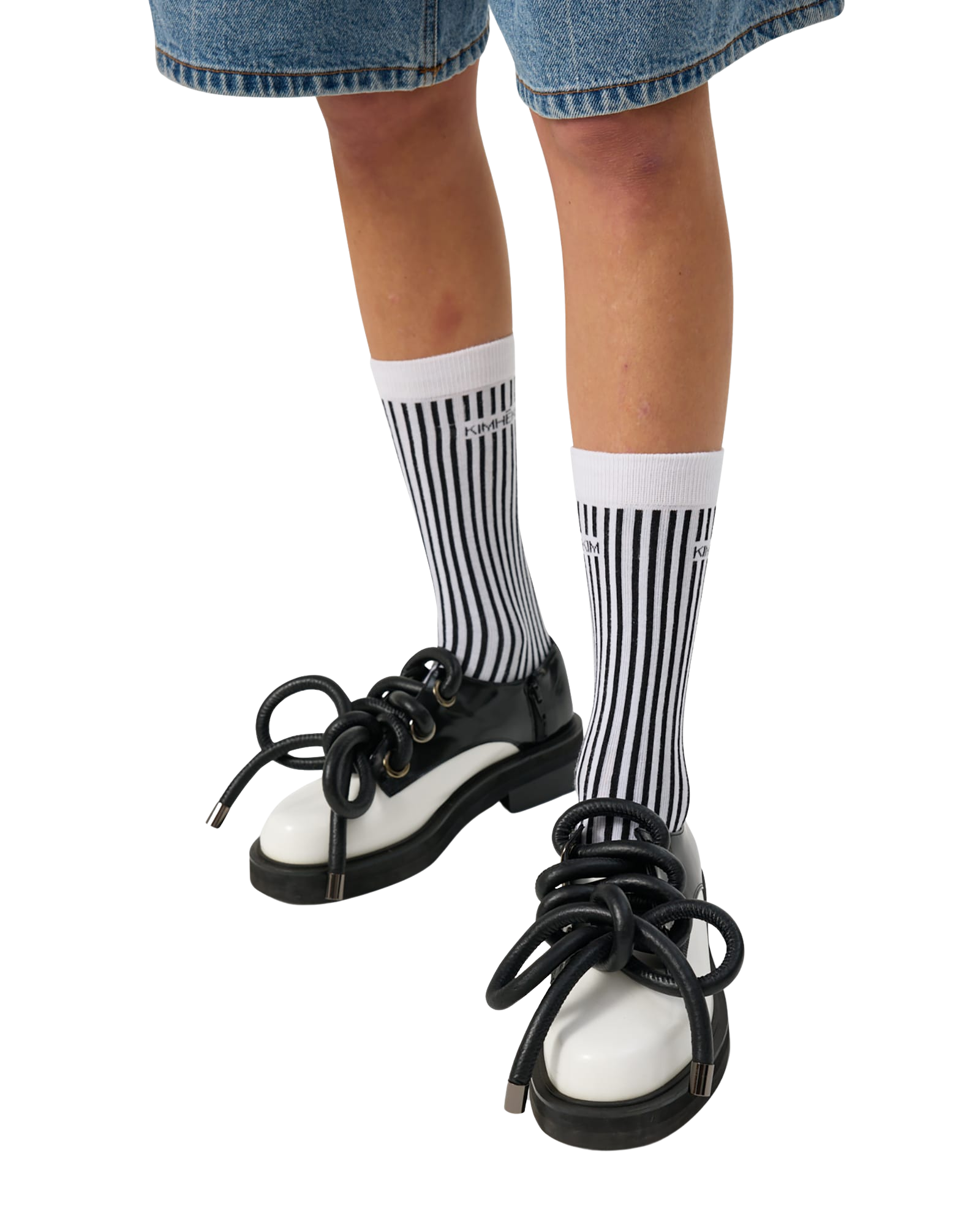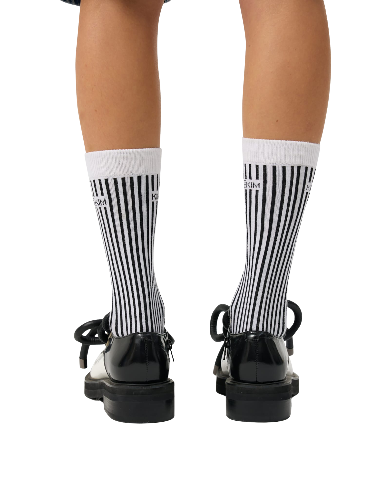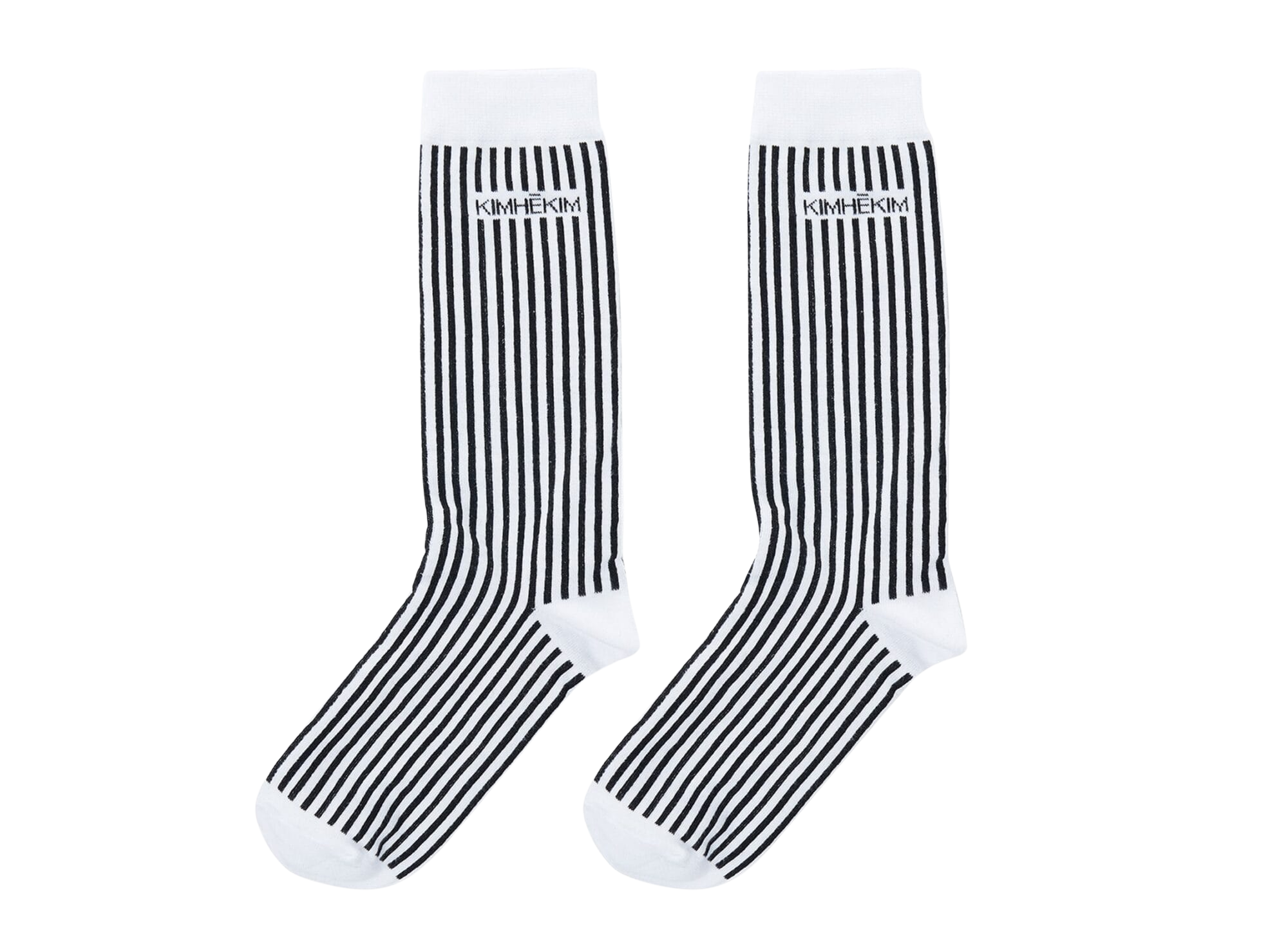 Striped Cotton-Blend Long Socks (Black/Ivory)