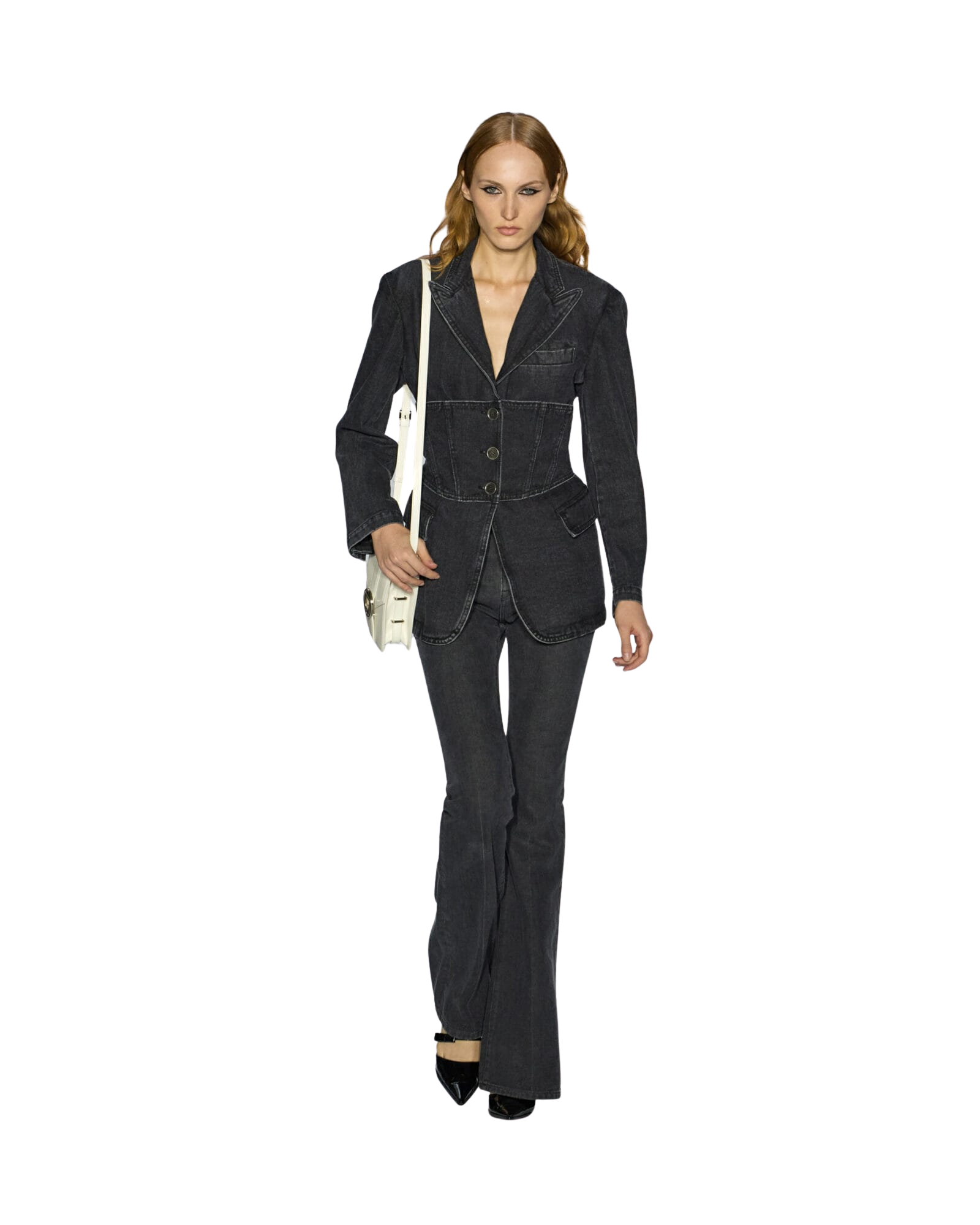 Three button jacket with corset layered.
