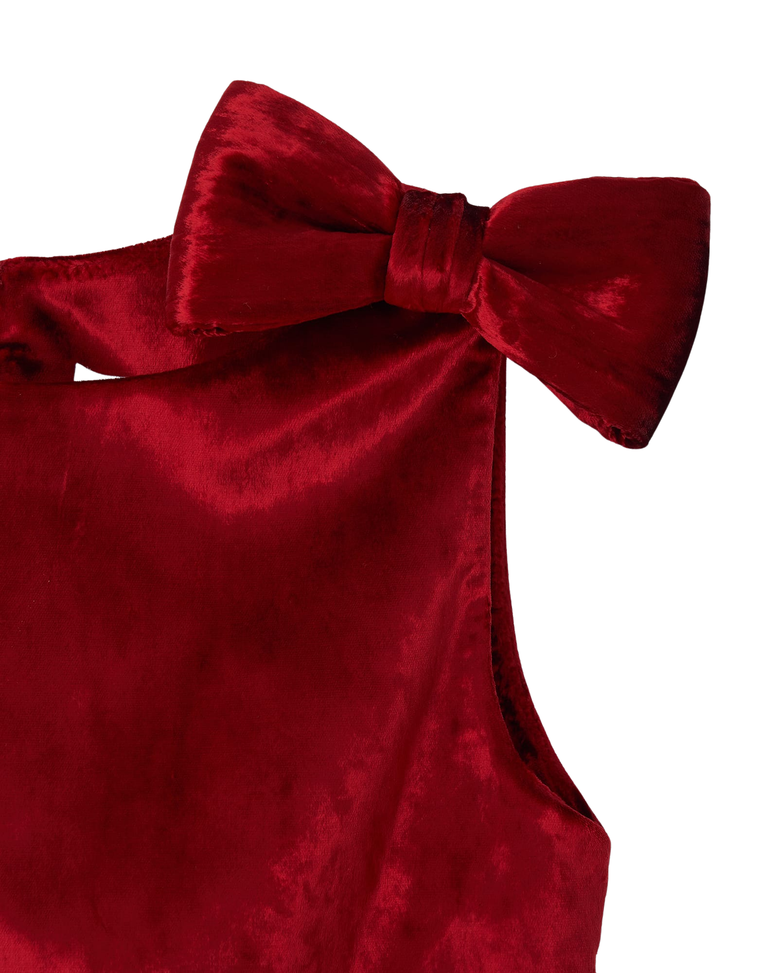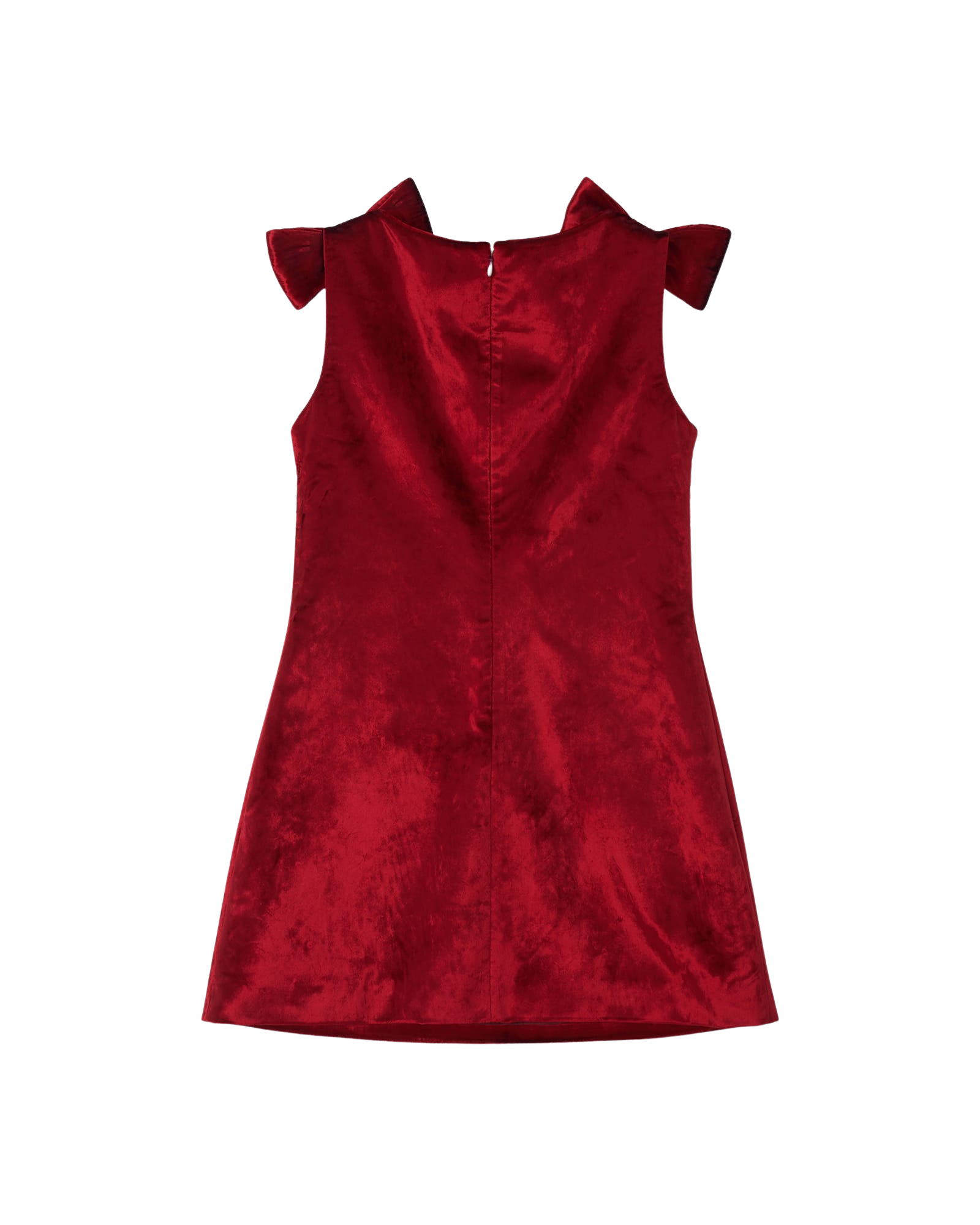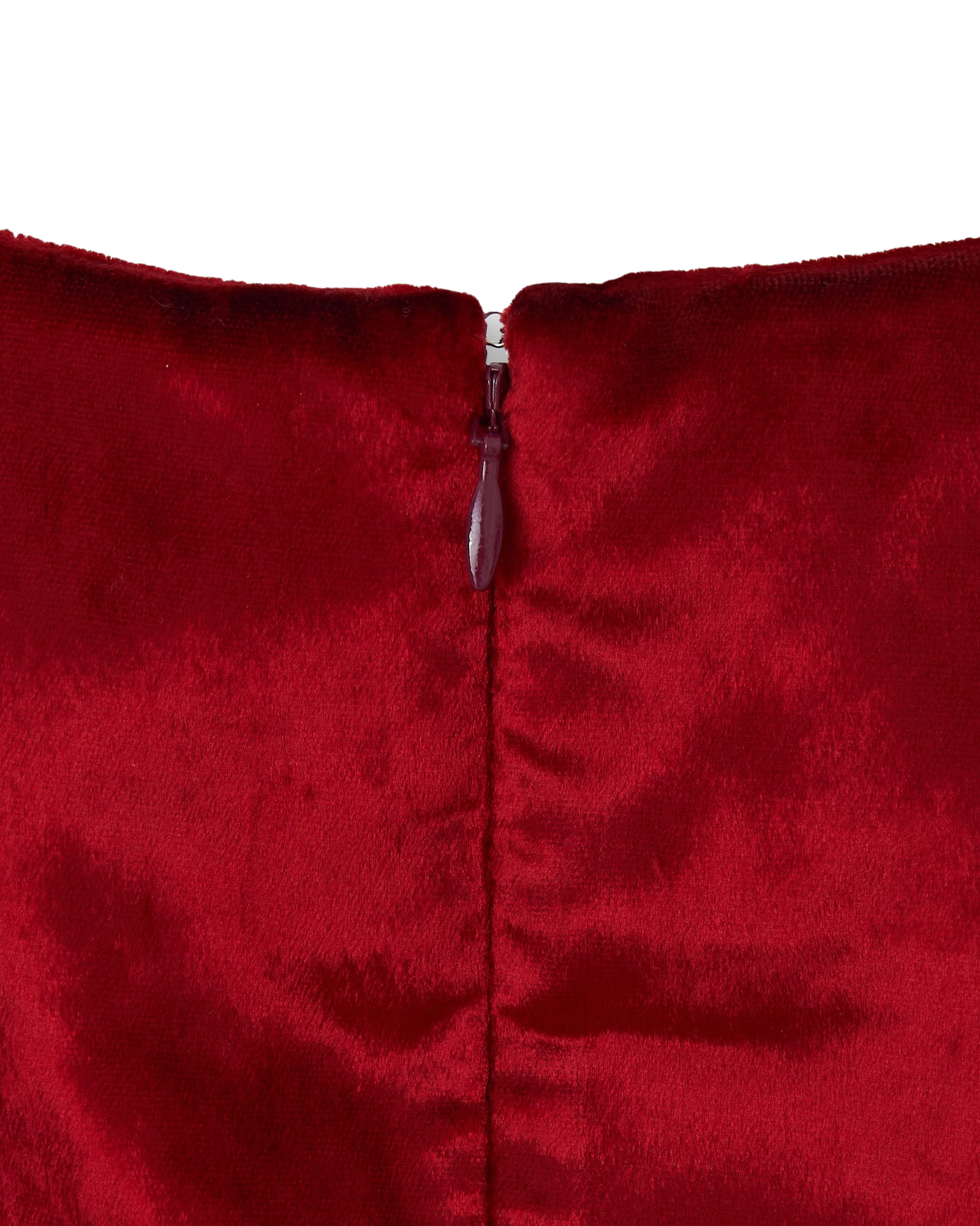 Off-The-Shoulder V Neck Wool-Silk Midi Dress