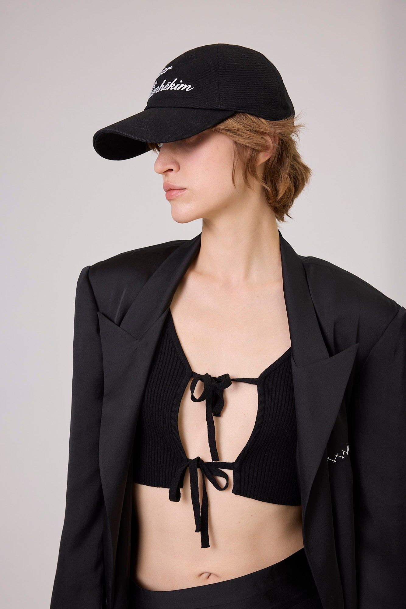 WASHED ATELIER EMBROIDERED DENIM BALL CAP (BLACK)