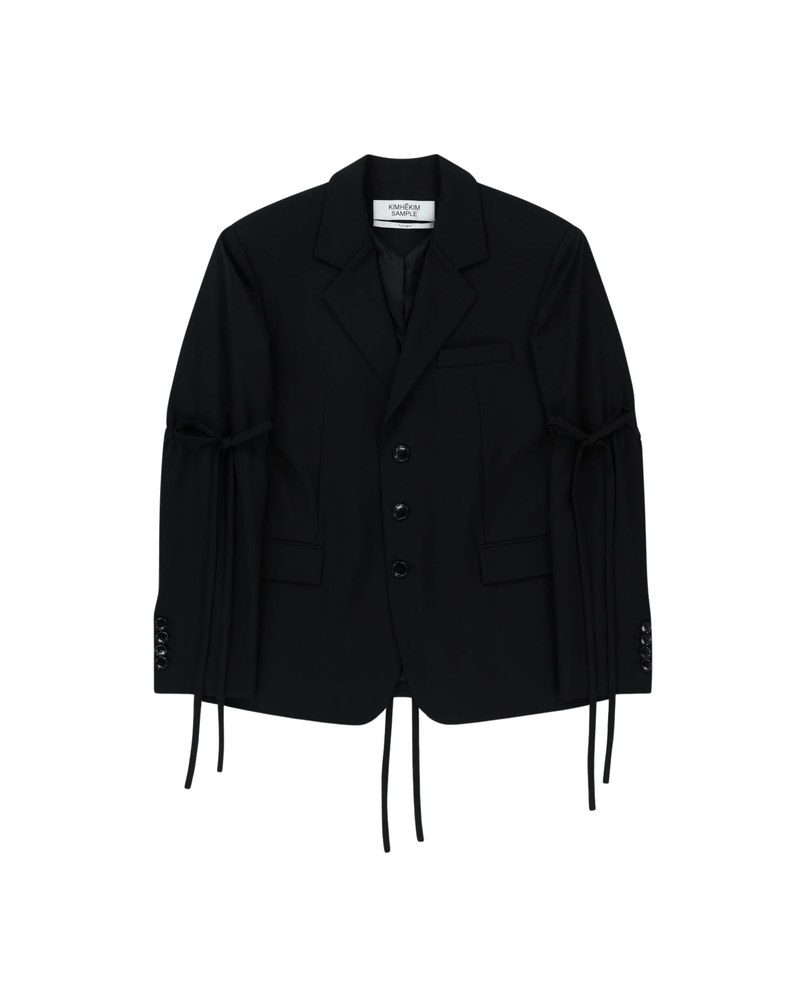 Wool Logo Embroidered String Tailoring Jacket (Black)