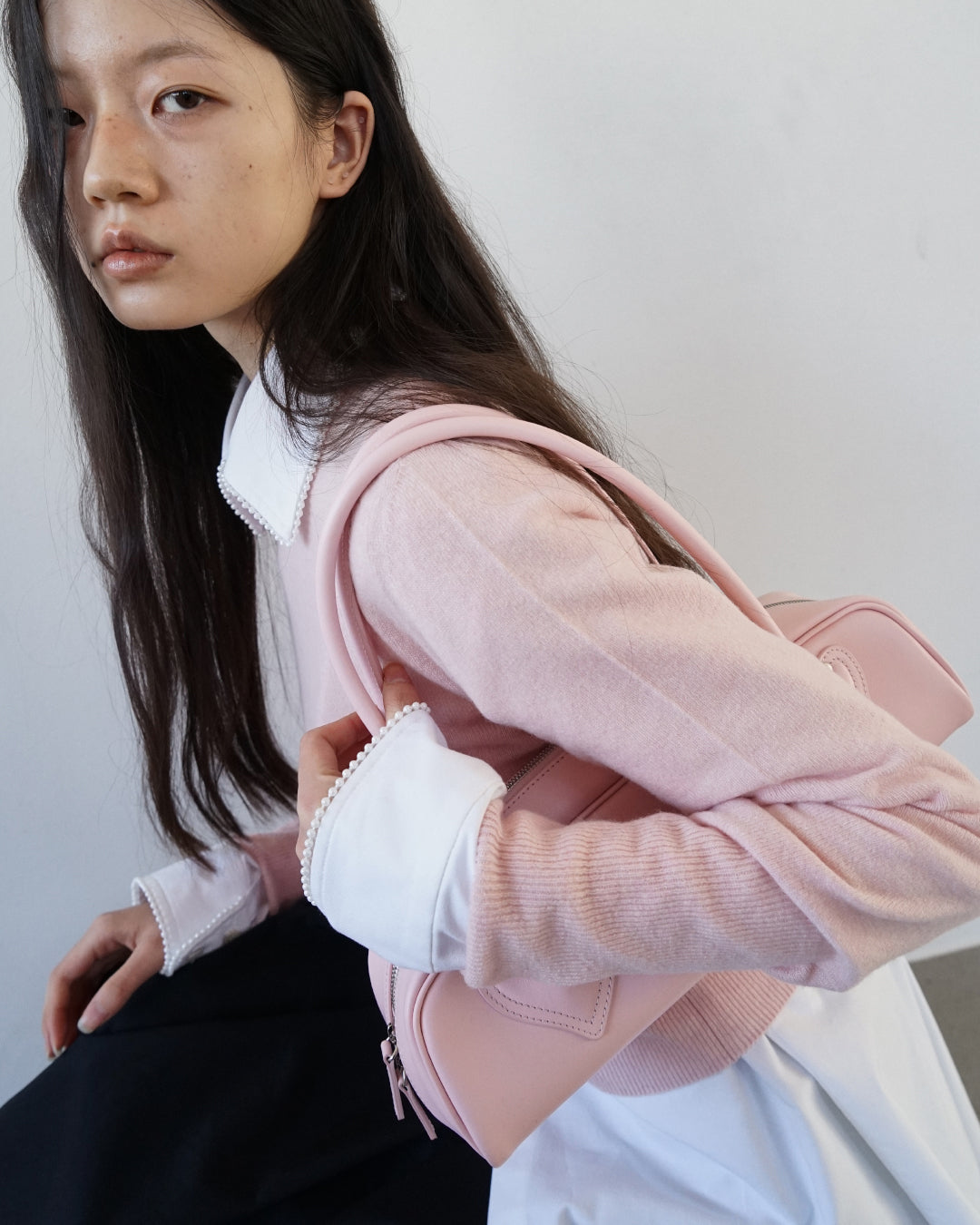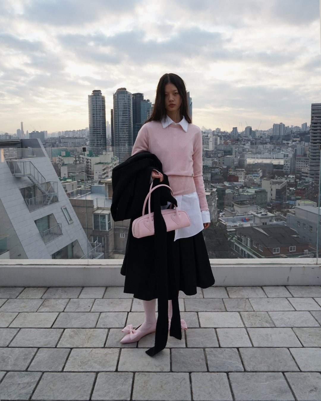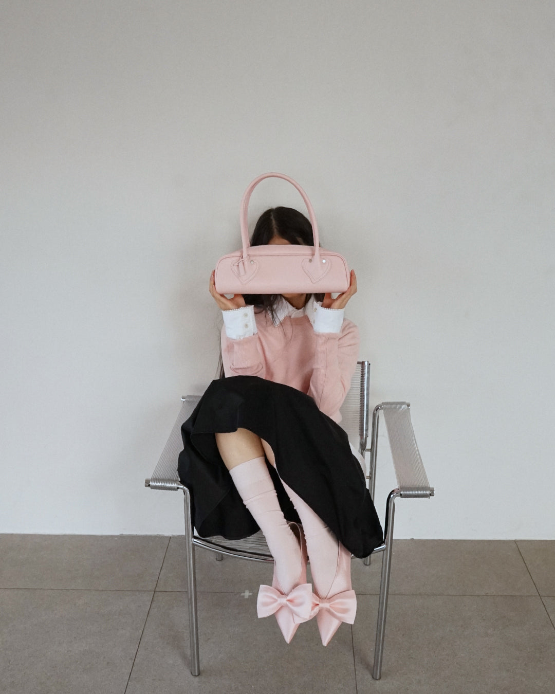 Pearl Ribbon Detail Cotton -Blended Knee-High Socks (Pink)