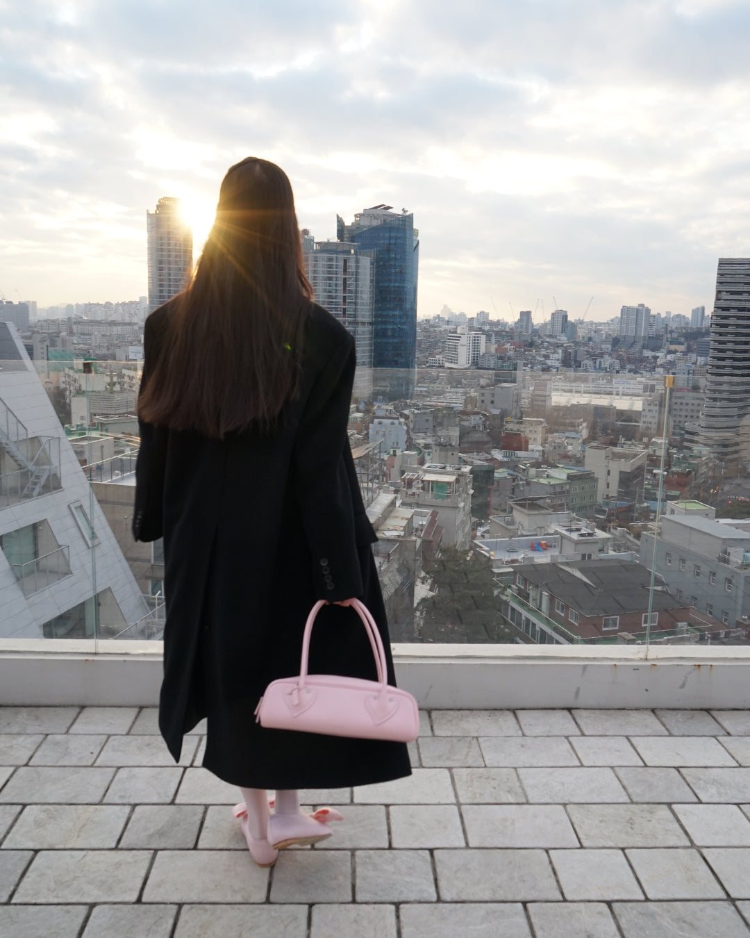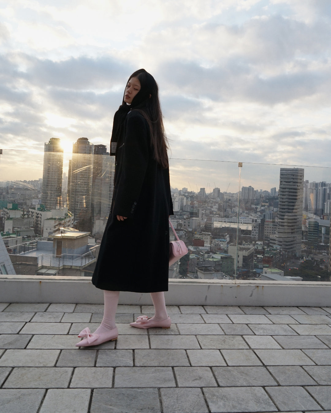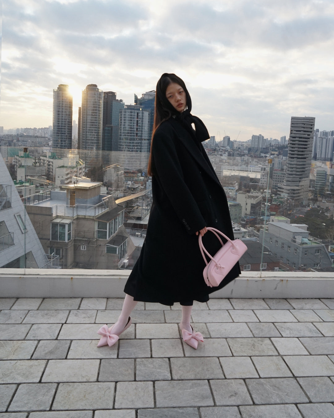 Pearl Ribbon Detail Cotton -Blended Knee-High Socks (Pink)